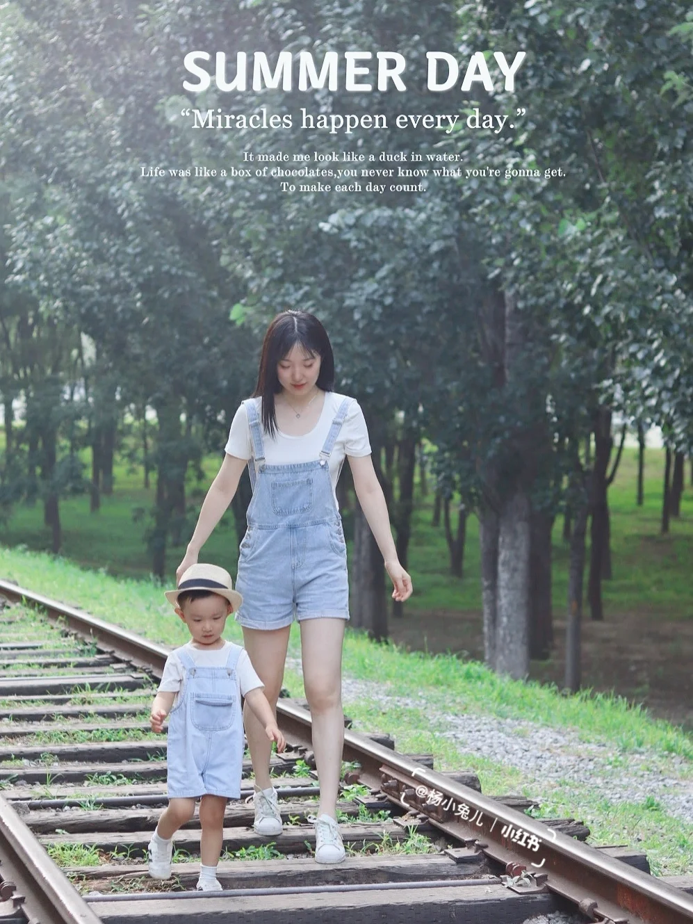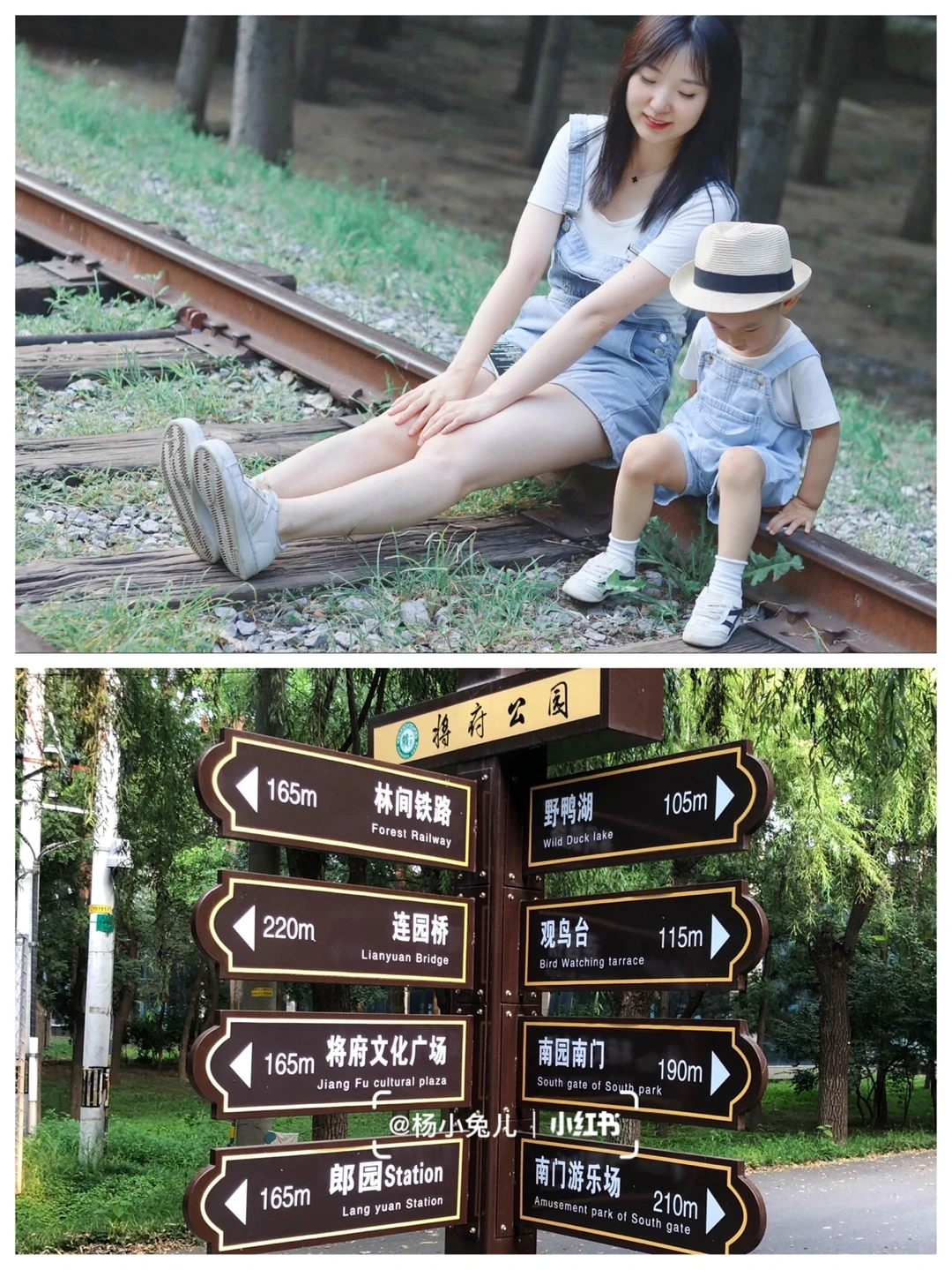抓住盛夏的小尾巴~打卡将府公园的林荫铁路🛤。告别乌泱泱的人群,躲避室内YiQ,这里安静、文艺、有气氛🌿穿上亲子装,带上草帽,一起来拍照吧~ . 🌈将府公园 📍北京市朝阳区将台地区东八间房村 💡淡季6:00-20:30,旺季6:00-21:30 💰公园门票免费,将府公园南门停车场免费 . 🚗浏览线路 有3条路线可以选择,我给大家画了个路线图,非常直观【图9】 1️⃣可以导航至“朗园station”,5分钟即可步行至铁路头,是直趟的铁路,可沿铁路一直走,感受蜿蜒曲折的林荫铁路。 2️⃣如果想直达图中的👍🏻拍摄点,可以导航到“将府公园南门”,不要跟图标走,看我画的图,5分钟穿小路,直达弯曲的那铁路,直接拍照。 3️⃣当然也可以从南门进,沿着路标“林间铁路”步行10分钟可到铁路头,和路线1的后半段一样走。 ❗️南门停车场免费,整个公园不大,建议还是停南门。 . 📸建议拍摄时间 早上9点之前的清晨,或者下午6点左右的黄昏,黄昏的光是一天当中拍照的“黄金时刻,内行称为magic hour,逆光拍起来很好看。 . 💡有些小tips ▪️因为森林里蚊虫较多,建议带上防蚊喷雾或防蚊贴、蚊虫叮咬膏。我们有备而来,还是每人都被叮了包😂。 ▪️带好水和零食,园中无小卖部和零售贩卖机。 ▪️衣服建议选择浅色或纯色,饱和度低一些,有森系小清新的感觉。建议带上草帽,很有夏天的感觉。 ▪️修图可以美图秀秀-图片美M化-美图配方里面直接搜“森林”,有一大批森林调色配方和贴纸,一键出图。 . 🌿今日份亲子穿搭 背带裤🍑 👩🏻My Happiness 👶🏻Luca妈 . 在爸爸加班的时候~ 实名感谢姥姥upup的摄影技术~ 有任何问题欢迎留📃 希望大家拍到美美的照片🎉 . 我是杨小兔儿🐰 带你解锁更多北京遛娃好去处🔓 —————— 北京遛娃|北京亲子|周末去哪儿|周末遛娃|周末亲子|男宝穿搭|夏日穿搭|将府公园|林荫铁路|铁路拍照|铁路打卡|网红打卡|网红拍照|亲子拍照|森林拍照|森系穿搭|