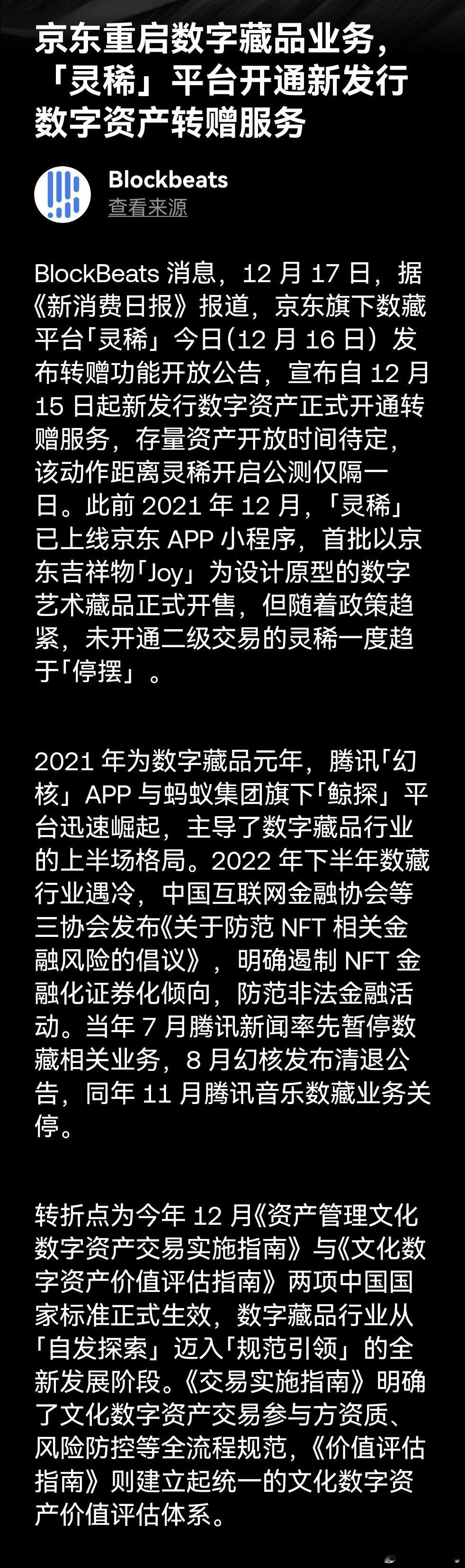 京东要重启数字藏品业务,藏品可以转赠,是不是就可以交易了?