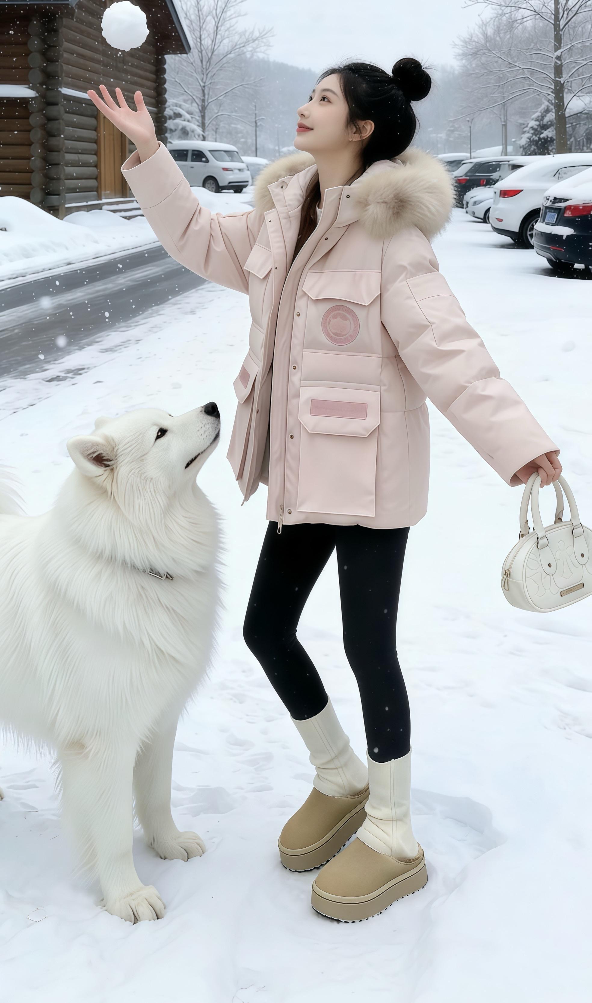 冬日飘雪的窗边,这件蓬松黑羽绒承包了所有松弛暖意,文艺氛围感拉满
