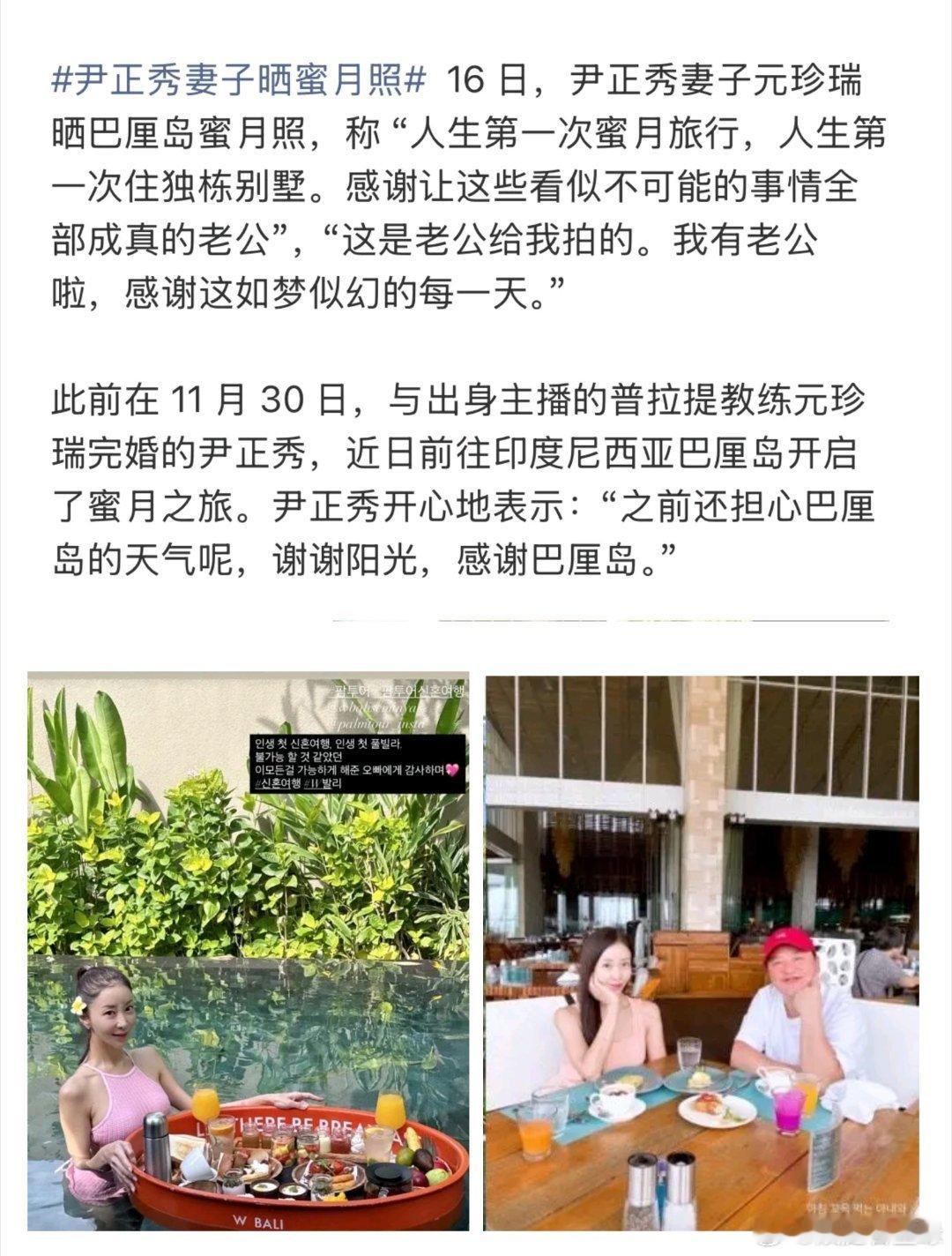 尹正秀妻子晒蜜月照12月16日,尹正秀妻子晒蜜月照看热搜点进去的,大晚上一度怀疑自己困迷糊了,无法理解文字跟图片怎么对不上!看了眼评论区,还有一群人跟我一样,我就放心了,哈哈哈,本来抱着祝福跟好奇的心态点进去的,结果发现人不对,怎么不认识,名字又没错,以后建议热搜加上标点符号或者空格,感觉好奇心没得到满足睡不着了!咱们认识的尹正是还没结婚吧!