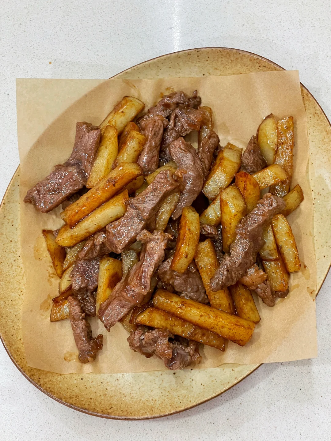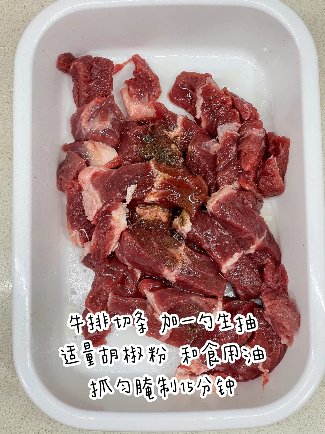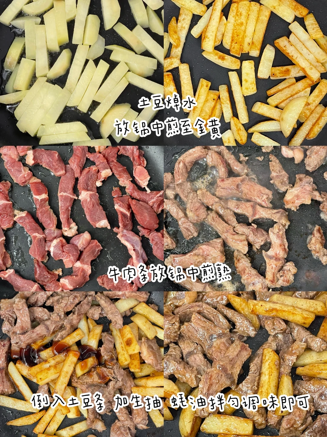 牛排和土豆的神仙做法一定要试试,简直太太太下饭啦❗️ ✅准备食材:牛排、土豆. ✅制作方法: 🔹牛排和土豆分别切条. 🔹牛肉条加一勺生抽、适量胡椒粉和食用油抓匀腌制15分钟. 🔹土豆条提前焯一下水,倒入锅中煎至金黄变软,盛出备用. 🔹牛排条倒入锅中煎熟,倒入土豆条,加适量生抽和蚝油拌匀即可.
