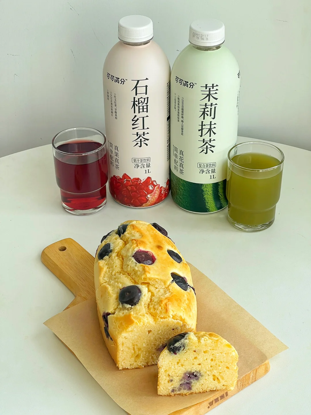 我自己超爱喝这款0糖0脂0卡的茉莉抹茶,闺蜜爱喝酸甜口味的石榴红茶. 这两款茶饮搭配松软的蓝莓蛋糕真的太绝了!