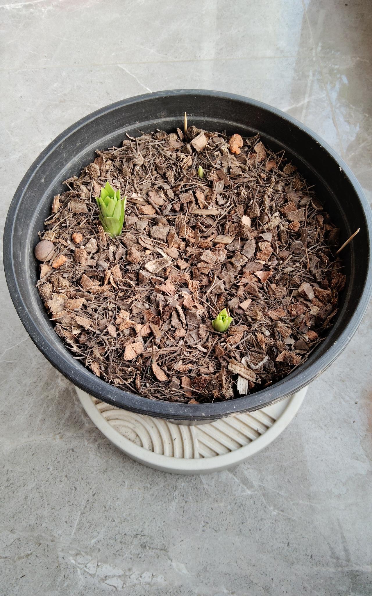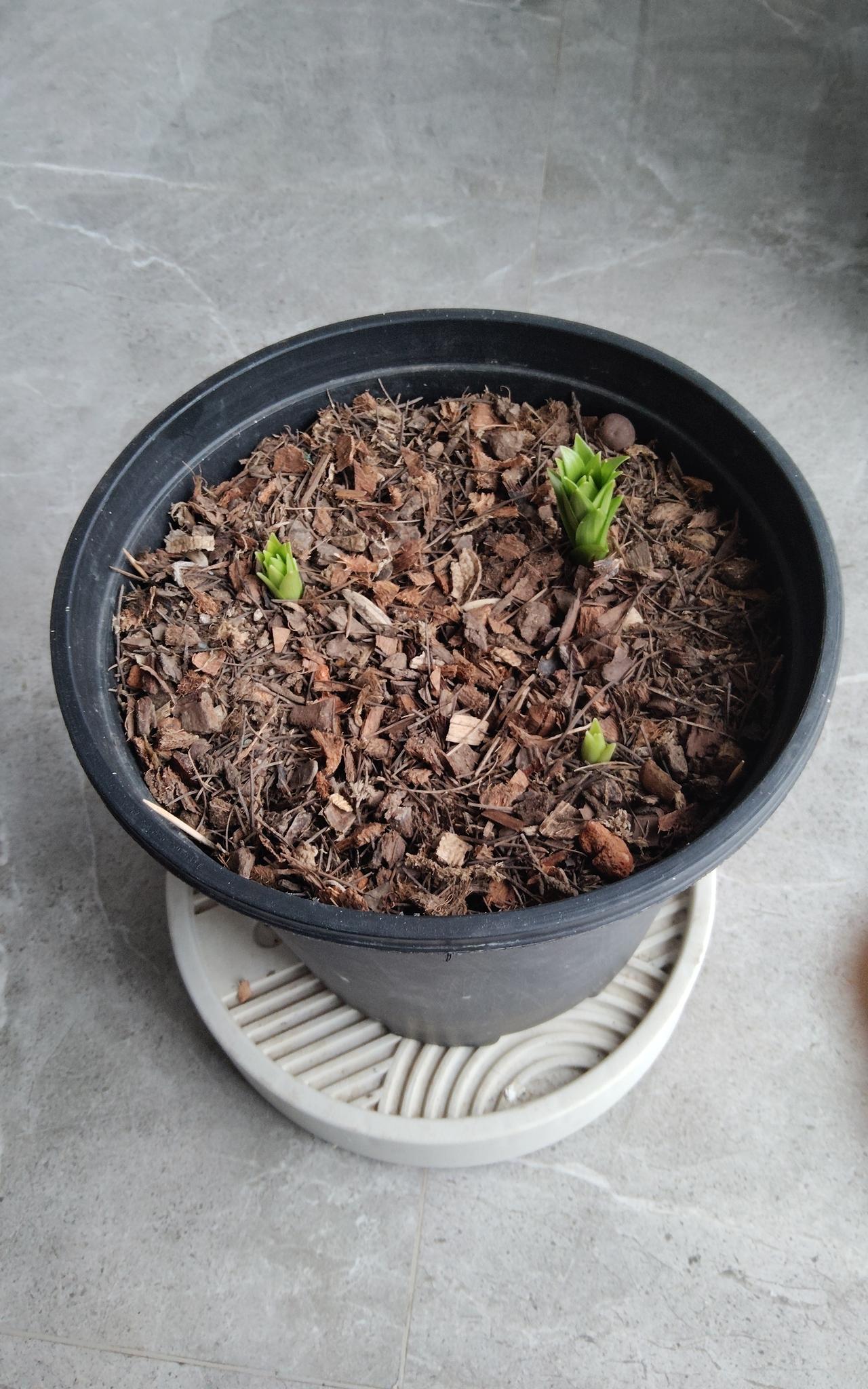 友友们我种的《索邦》百合出芽了! 我的百合品种叫《索邦》,一个月前我把百合种球放在冰箱里进行了冷藏春化,于11月22日进行了种植。予计春节期间能开花。 12月05号,笫一棵出芽,距栽种时间相隔13天。 12月10号,笫二棵出芽,距栽种时间19天。 12月12日,笫三棵出芽,距栽种时间第20天。 12月14日,四棵百合全出芽。(一棵烂芽除外)