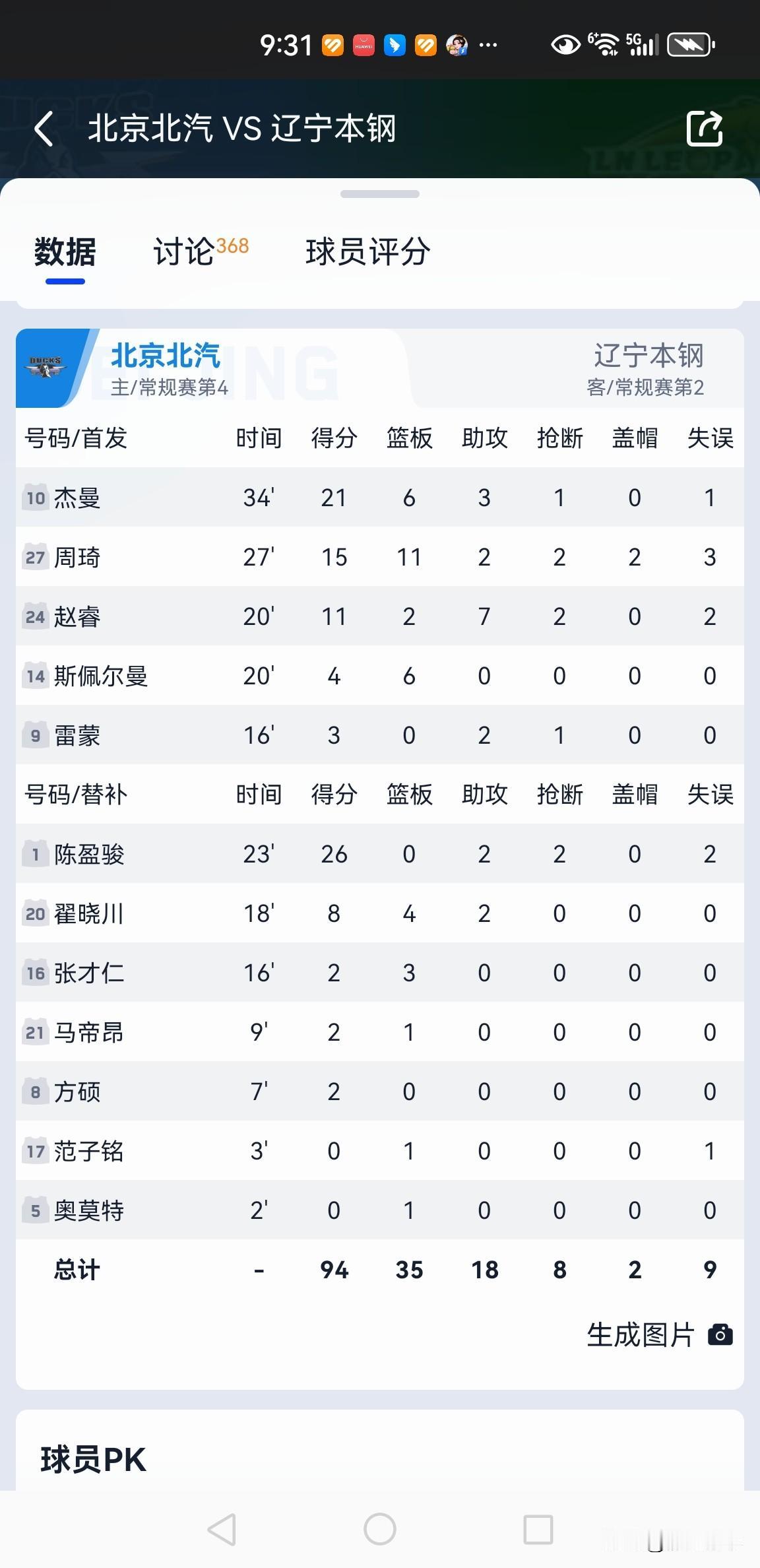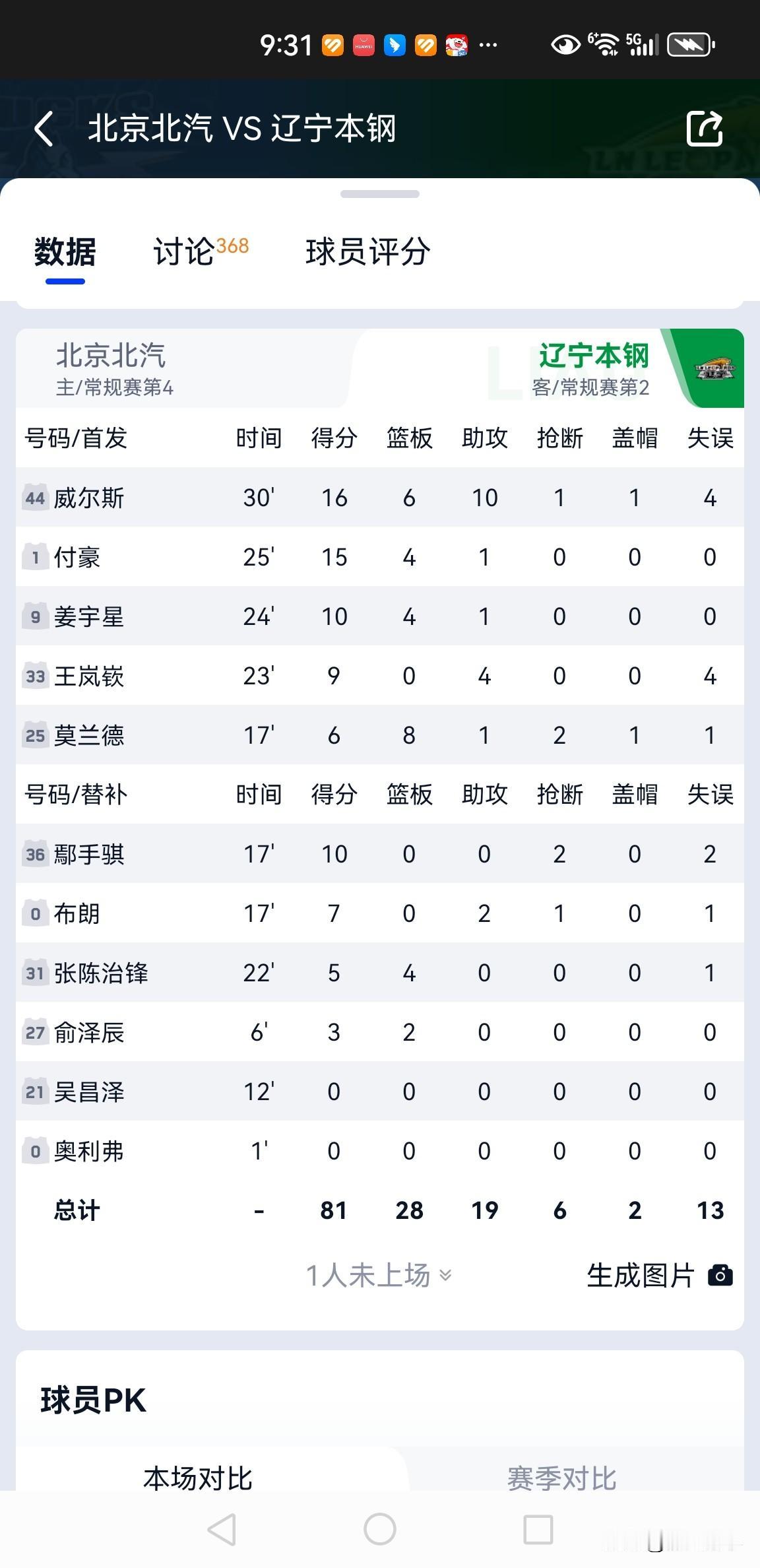 裁判不允许辽篮赢、无耻无能地扼杀比赛的精彩性公平性,是中国篮球发展的最大麻烦制造者,辽宁无奈负于北京,辽篮球员评分: 付 豪 10分 威尔斯 8.5分 鄢守琪 8.5分 莫兰德 8.5分 姜宇星 8.0分 张陈志峰 8.0分 王岚钦 7.5分 吴昌泽 7.5分 余泽晨 7.5分 布 朗 7.5分 李虎翼 6.5分 奥利弗 6.0分 辽篮 辽篮外援