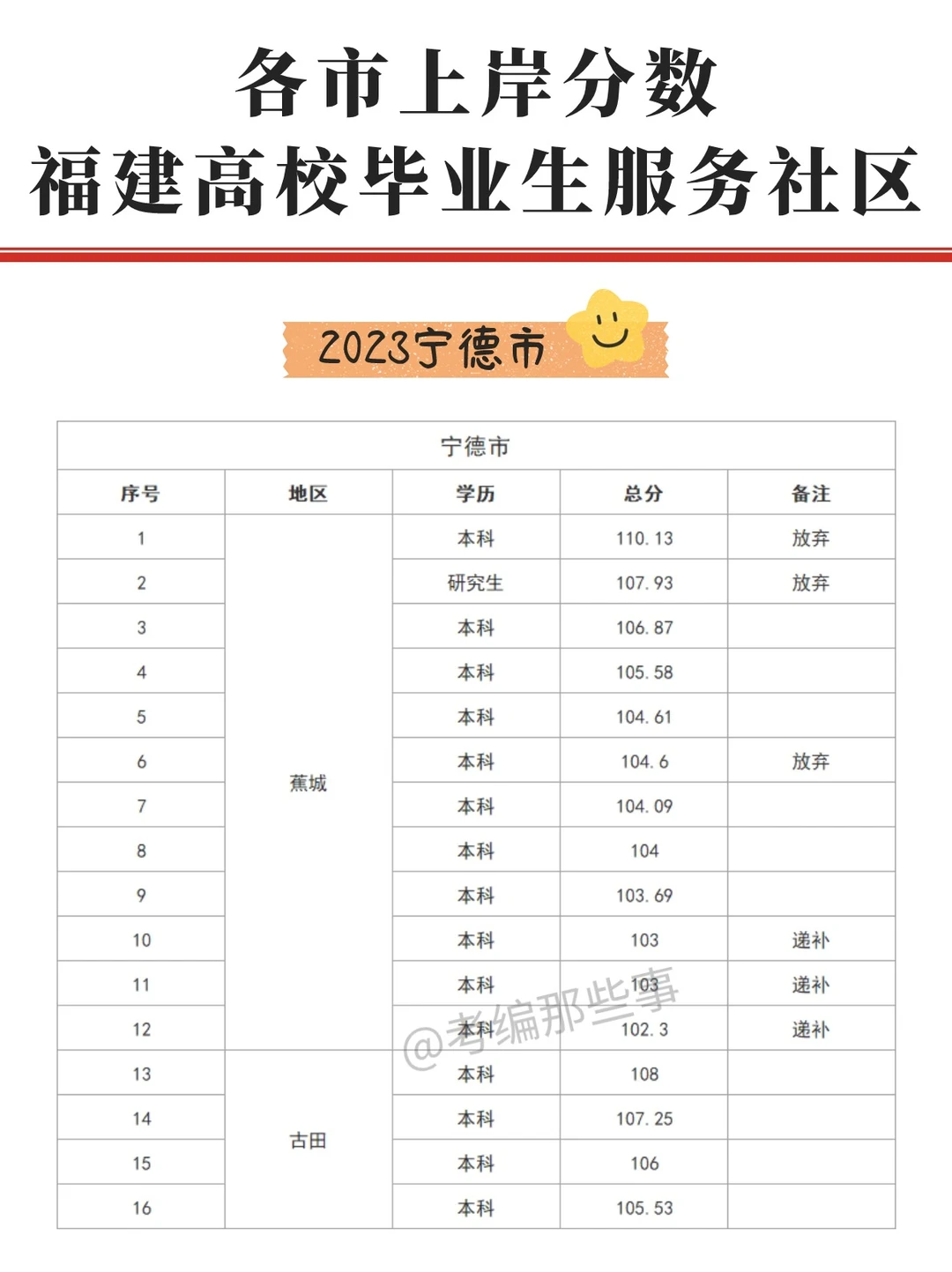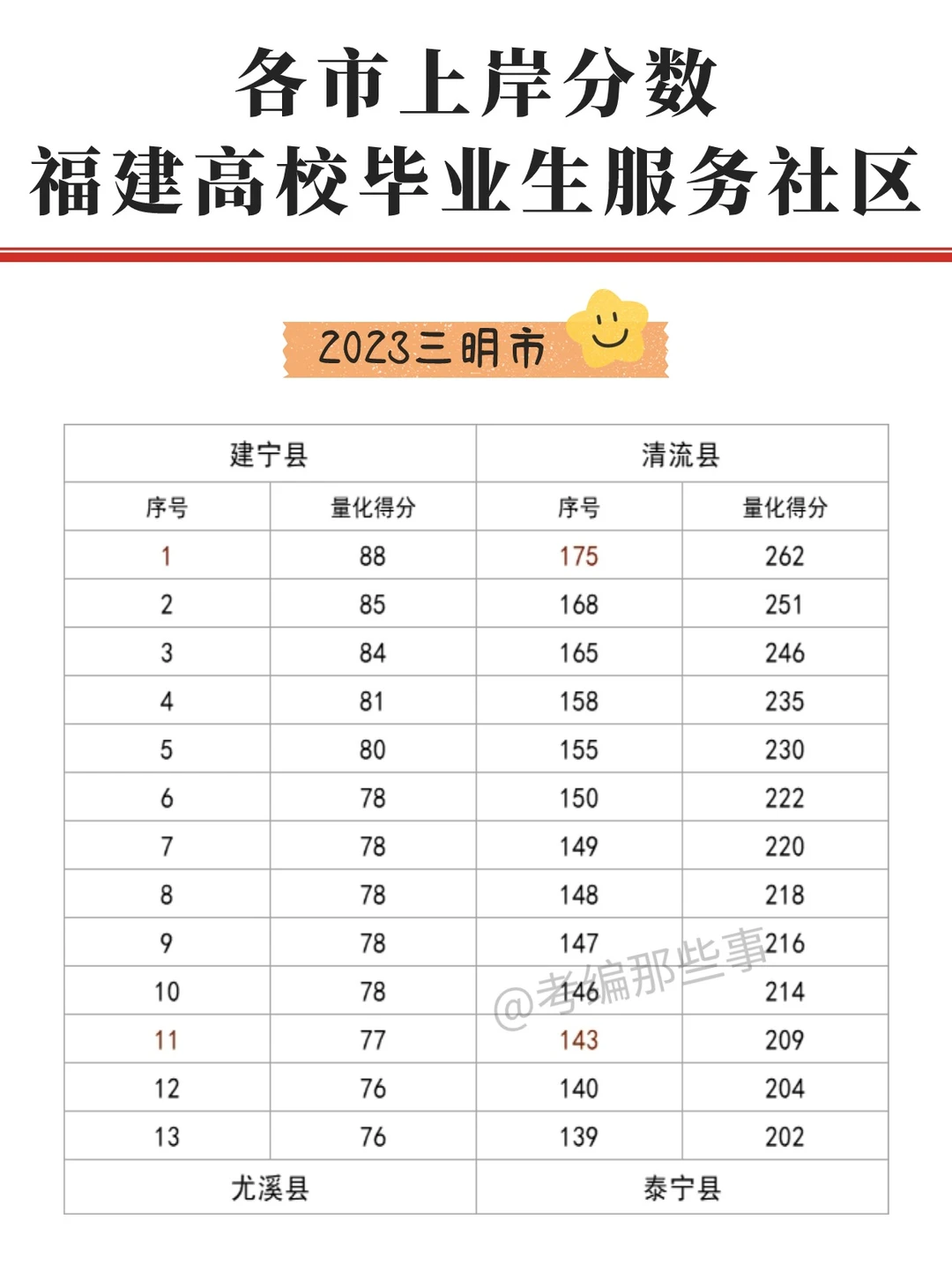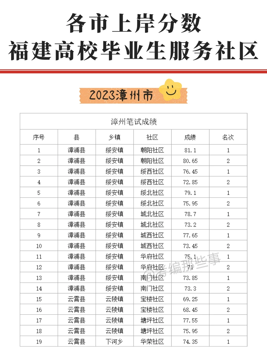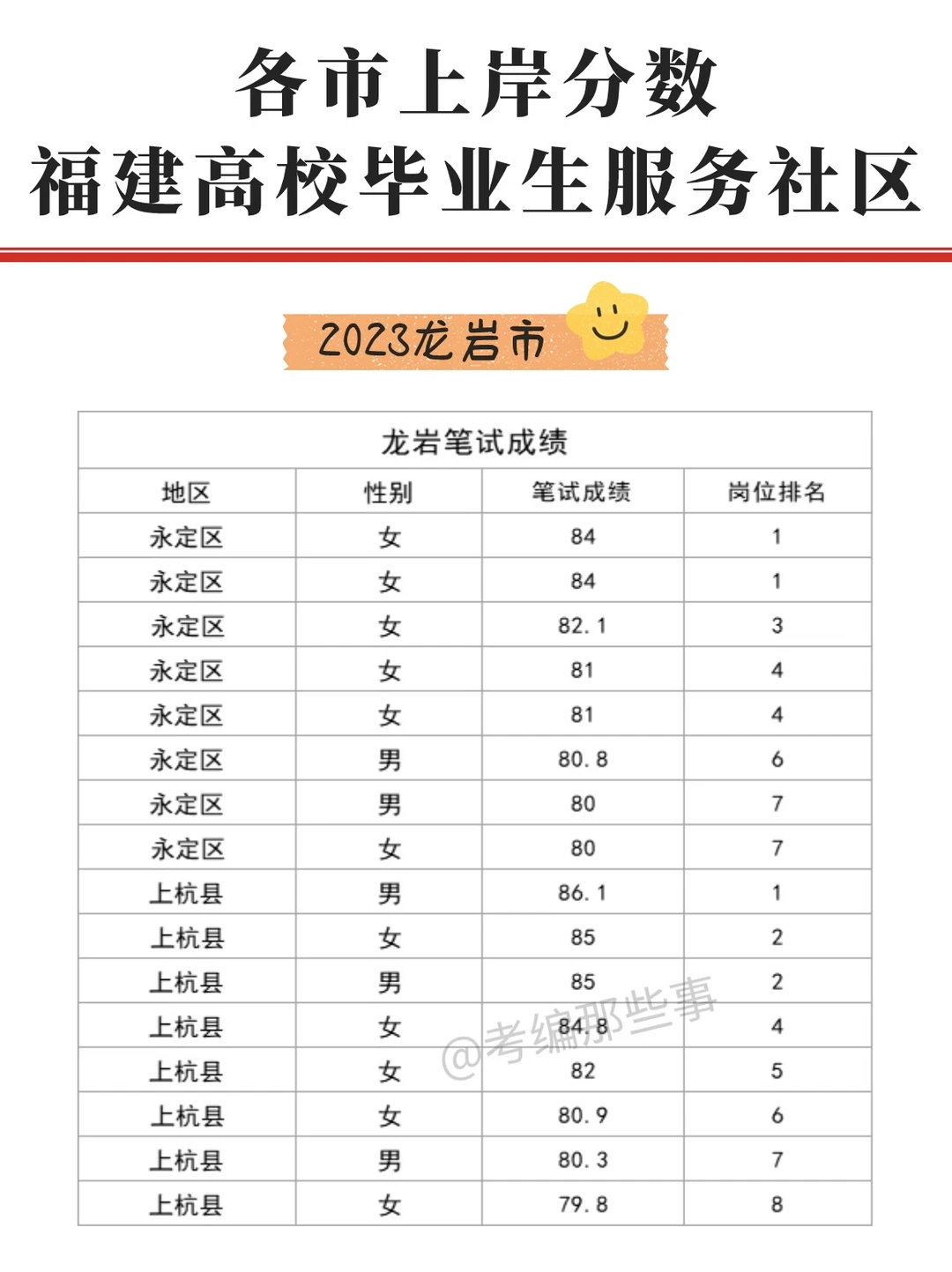 福建高校毕业生服务社区各市上岸分数 2023的,大家可以参考 福州、漳州、龙岩、南平、三明、宁德、平潭