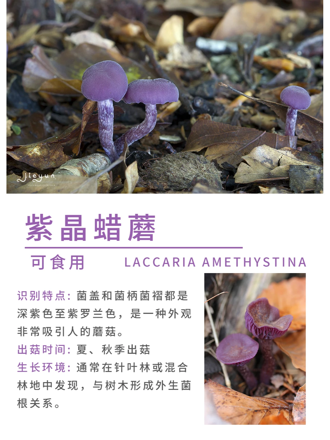 识别特点: 植物界的“紫霞仙子”,菌盖和菌柄菌褶都是深紫色至紫罗兰色