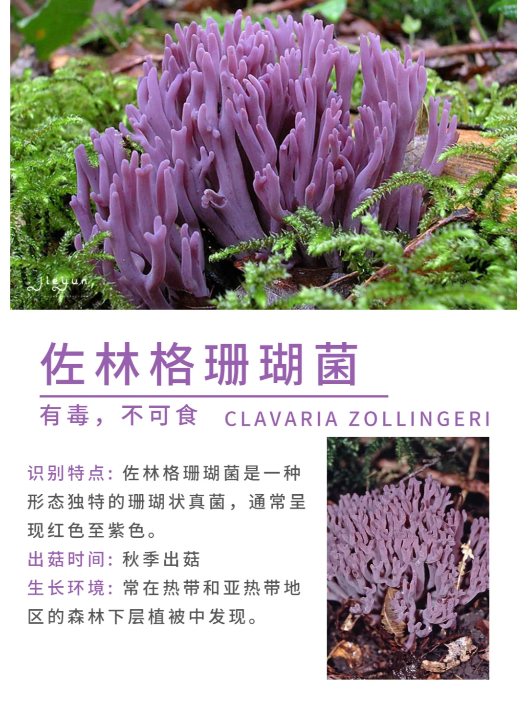 识别特点: 是一种形态独特的珊瑚状真菌,通常呈现红色至紫色。
