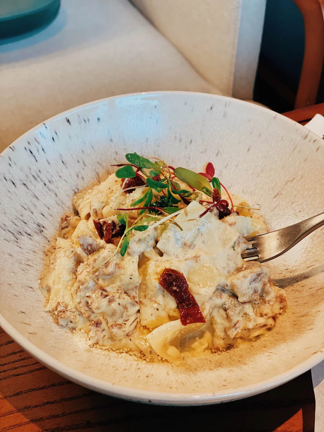🍝牛尾宽面:光是看卖相就忍不住想吃吃吃了!吃起来很爽口不黏糊,奶香味很重,但是一点都不腻。