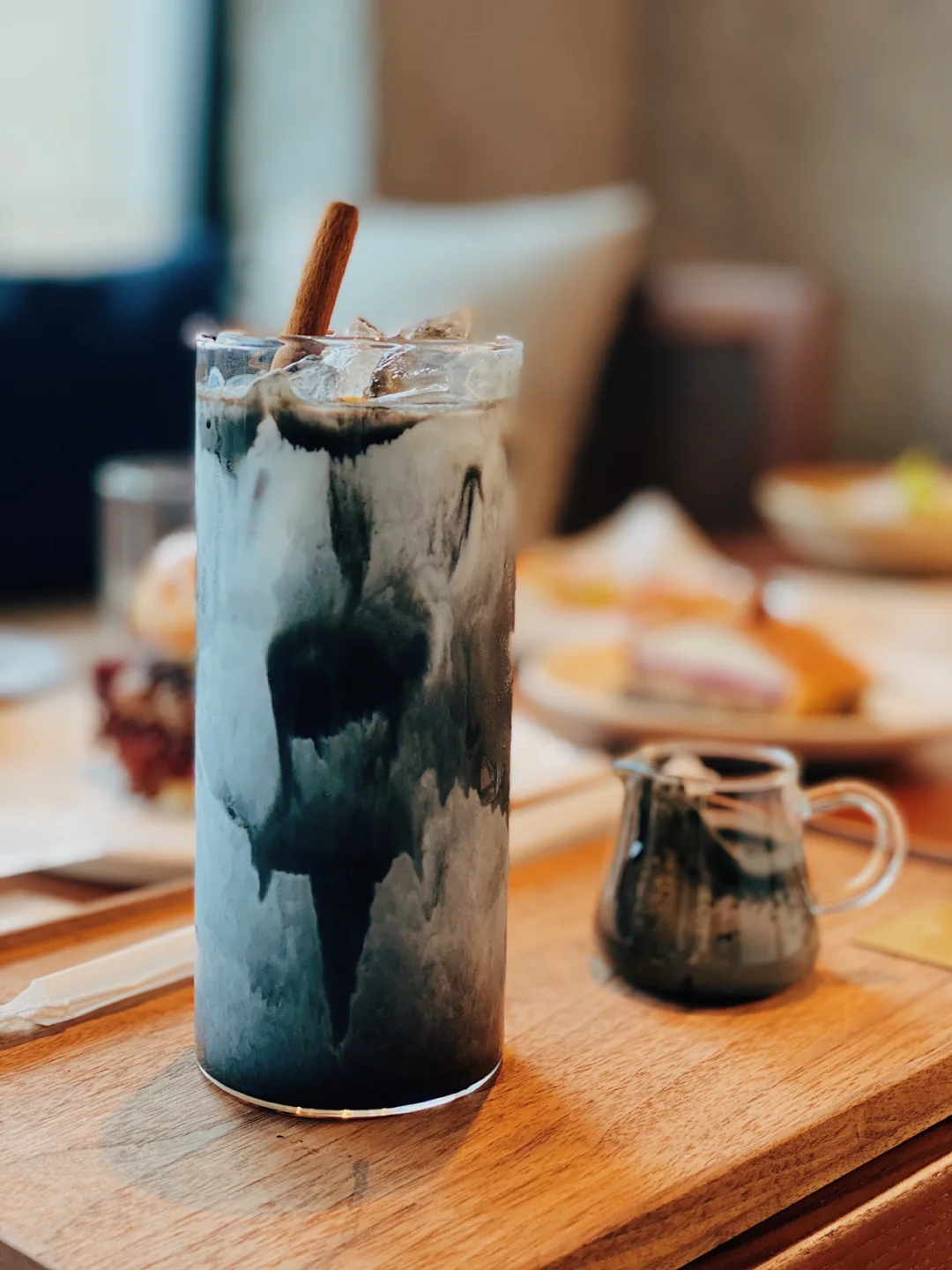 🌑竹炭黑芝麻拿铁:像一幅水墨山水画一样的竹炭黑芝麻拿铁,视觉上黑白层次分明,味觉上更是出众惊艳,带着芝麻味的咖啡香浓可口,好像每喝一口都能长出35cm的乌黑头发。