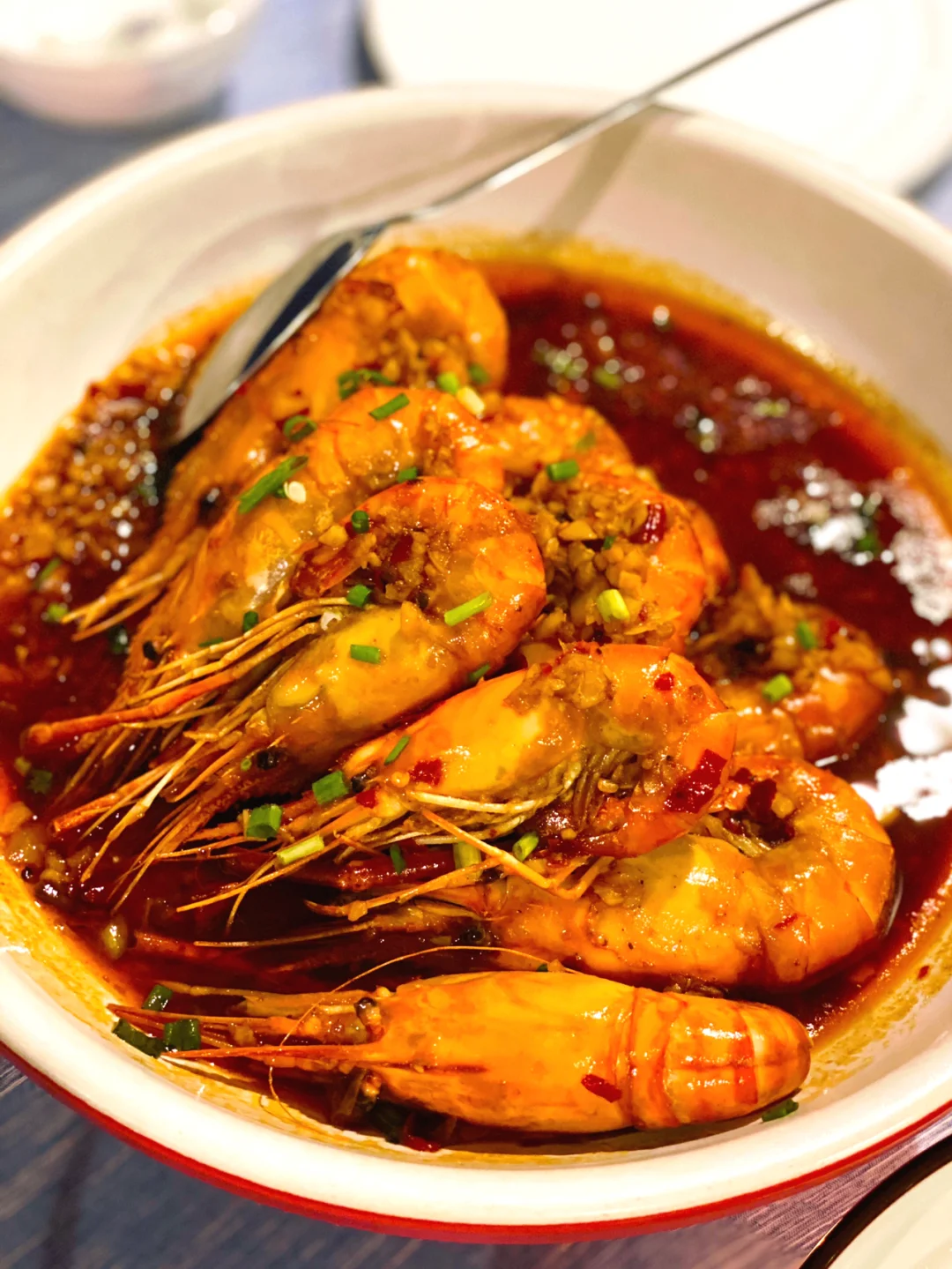 🍤老板一吃就加薪的罗氏虾:这个季节的虾竟然个头那么大,用了秘制的酱汁,吃起来香辣可口,沾着配饭超爱了。