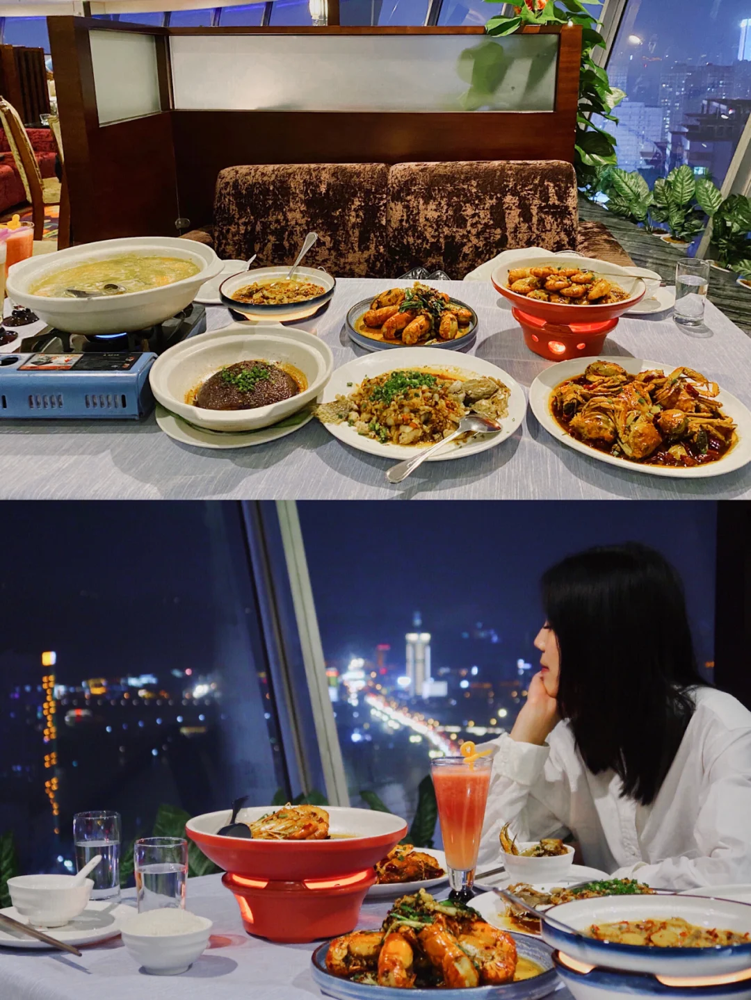 🌈从春天百货上楼坐到29楼的友谊宾馆就到,边听朋友讲边期待着,脑海里一直在想:“在这个选择餐厅吃饭会不会天旋地转!”🤔但是等我坐到了朋友预定的卡座,发现是我想太多了哈哈哈,能够真实感受到轻微的位移,转动的速度不会很快,吃饭看着窗外就能遇见的长沙震撼的夜景!旋转时可看到远处的岳麓山,秀丽的橘子洲,北去的湘江水,还可以看到市区的车水马龙、国金中心的魏然耸立以及酒吧一条街的点点霓虹,山水洲城可谓尽收眼底,真的太美了!这里主打湘味口味海鲜。给大家分享一下真实的味道。