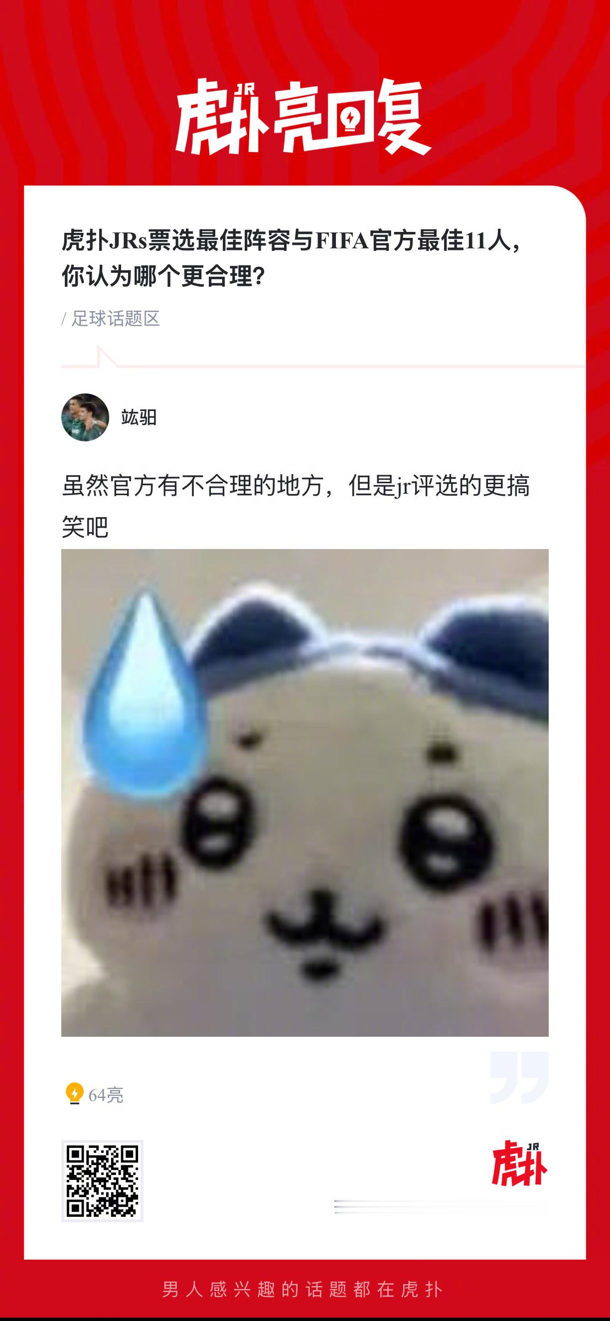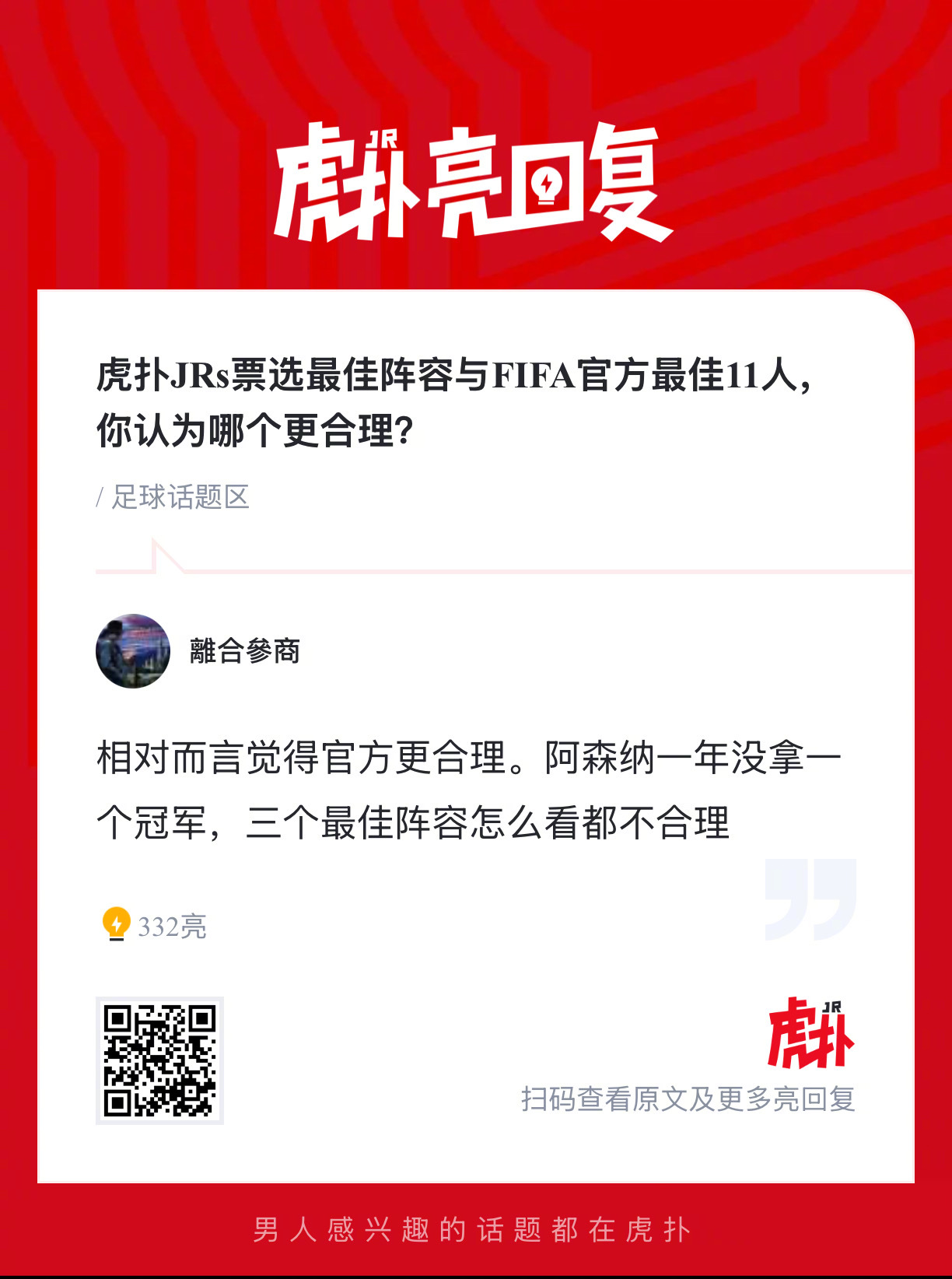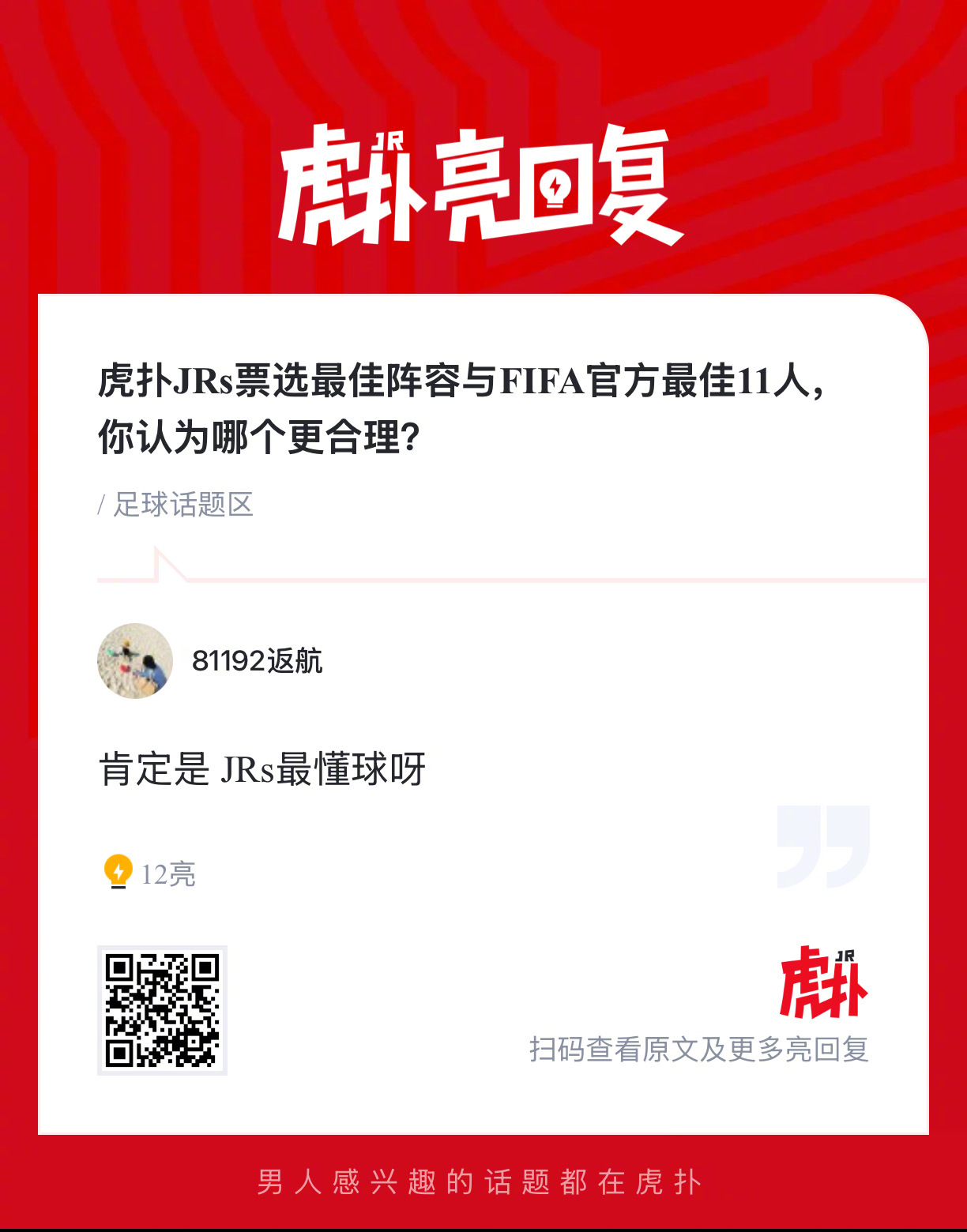 虎扑JRs票选最佳阵容与FIFA官方最佳11人,你认为哪个更合理?