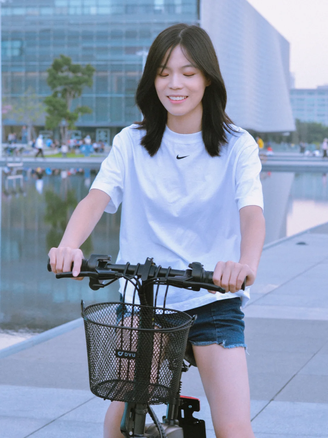 🍃周末的时候,我爱骑着大鱼自行车去宝安图书馆那附近玩,升降底座我调节到最低的位置,骑行起来轻松舒服,在平坦顺滑的路上加起扭一下变速转把手跑得很稳,来回12公里都毫不费劲。🌾骑行累了可以找个有P标识的区域停车,用无线遥控按上锁车的键,🚔陌生人只要接发车身就会发出报警的声音,防盗模式很加分了~