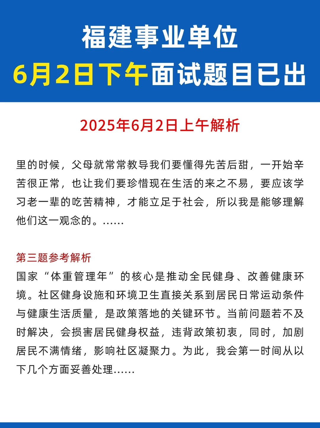 福建事业单位面试题(6月2日下午)