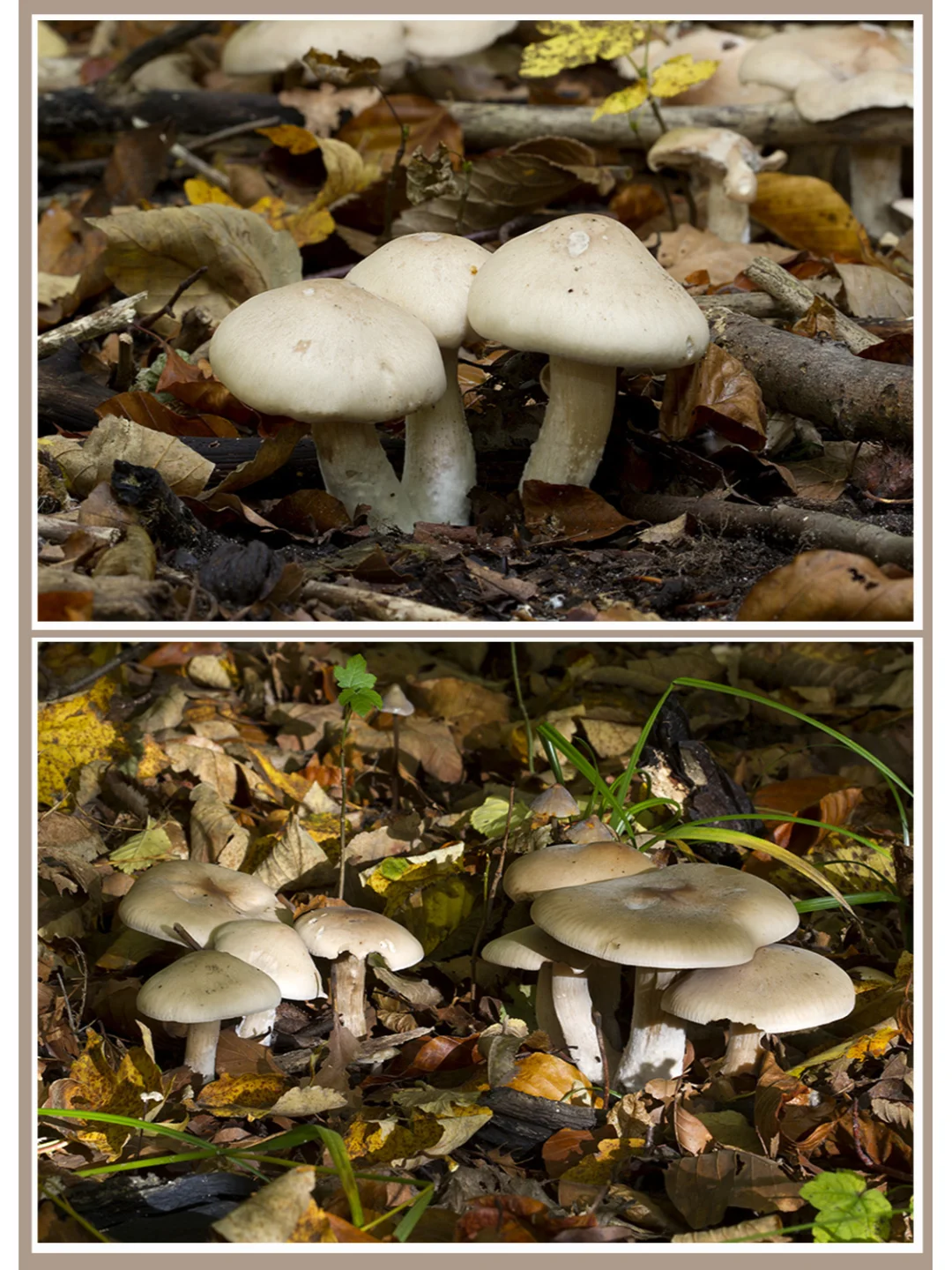华丽香蘑 lepista irina 学名:肉色香蘑 可食,香气浓烈 该菌秋季出菇,常生在在林中落叶层。 与紫丁香蘑相似,但该菌通体灰褐色,且香气更加浓烈 由于该菌外型与很多菌都相似,一般难以区分,所以只有经验丰富的采摘者采摘食用较好