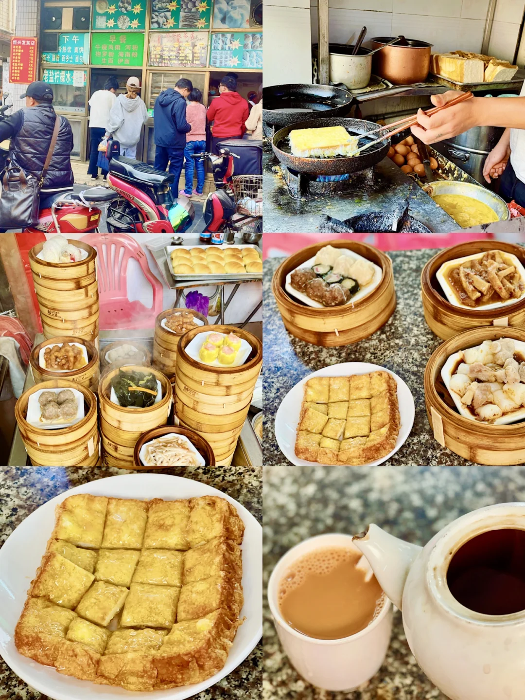 🥰藏在小巷里面的老字号餐厅,很多海南人都来这里吃早餐和下午茶👀我来吃的时候是一个人~撑死点了三猪肚、三式丸子、粉蒸排骨这三个点心,和我在深圳吃的港式点心媲美赢在性价比🤩最让我惊艳的是他们家的招牌西多士沾满了蛋液酱去煎,再平均切成16块淋上糖浆,吃上去松软香甜爱了👀我环顾了一下周围来就餐的食客都人手一杯热奶茶,我跟风点了招牌奶茶才5块一杯,还配上了一壶滚烫的茶壶,喝起来茶味很重还没有搅拌开喝到里面混杂甜甜的蛋液,怕甜的话可以兑着茶壶热茶喝,帮自己自助续杯~