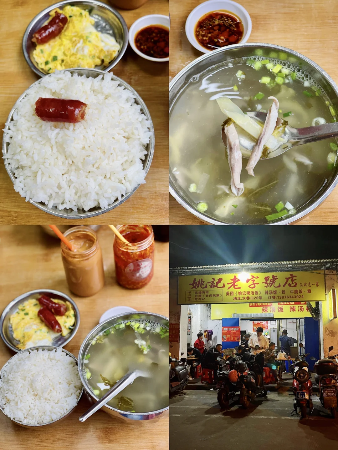 😉辣汤饭起源于早期海口的居民以捕鱼为生需要驱寒因此成为当地特色✔️发现了这家卖了30年辣汤饭的老字号,我点了最经典的辣汤饭➕蛋➕腊肠套餐,辣汤里面混杂着猪杂,还加了当地特色的粉条、酸菜和葱花等佐料,喝起来就是两个字“舒服”,再加上腊肠和蛋直接盖在白米饭上太好吃