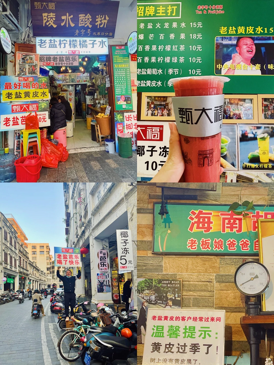 ✔️之前看王霏霏推荐的老盐黄皮水,就一直放进收藏夹,想着有机会来海口一定要来喝,但是我来的时候发现这个季节没有黄皮🤣老板和我说要喝老盐黄皮水就5-6月份的时候来,但点了招牌推荐老盐芭乐,喝了真的像它们招牌那样快乐,鲜榨纯正的芭乐汁加上盐水,喝起来酸酸甜甜太好喝了🙋🏻老板在海口天气那么冷的情况下,他脸上带着快乐的笑容拿着喝了芭乐会快乐的招牌,亲自帮自己的店揽客,怎么会有那么正能量的老板!