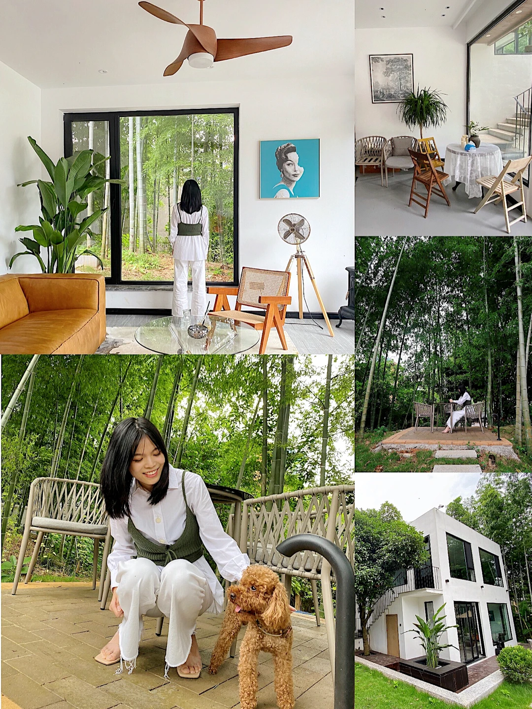 😎我超爱房间落地窗的一角,躺着望着窗外的竹林发呆非常惬意~山市真的很原生态,独栋别墅被茂密的竹林覆盖着,偶尔会飞过几只蚊子~但不影响体验,这家民宿已经将蚊虫消杀得差不多,会在客人来入住之前点好一片蚊香,并且准备电蚊拍和花露水!店长小熊还会帮我点上长沙本地好吃的外卖,外卖到了就会叫我们出来大院子或小院子吃饭,让我在长沙感受到家的温暖!爱了~