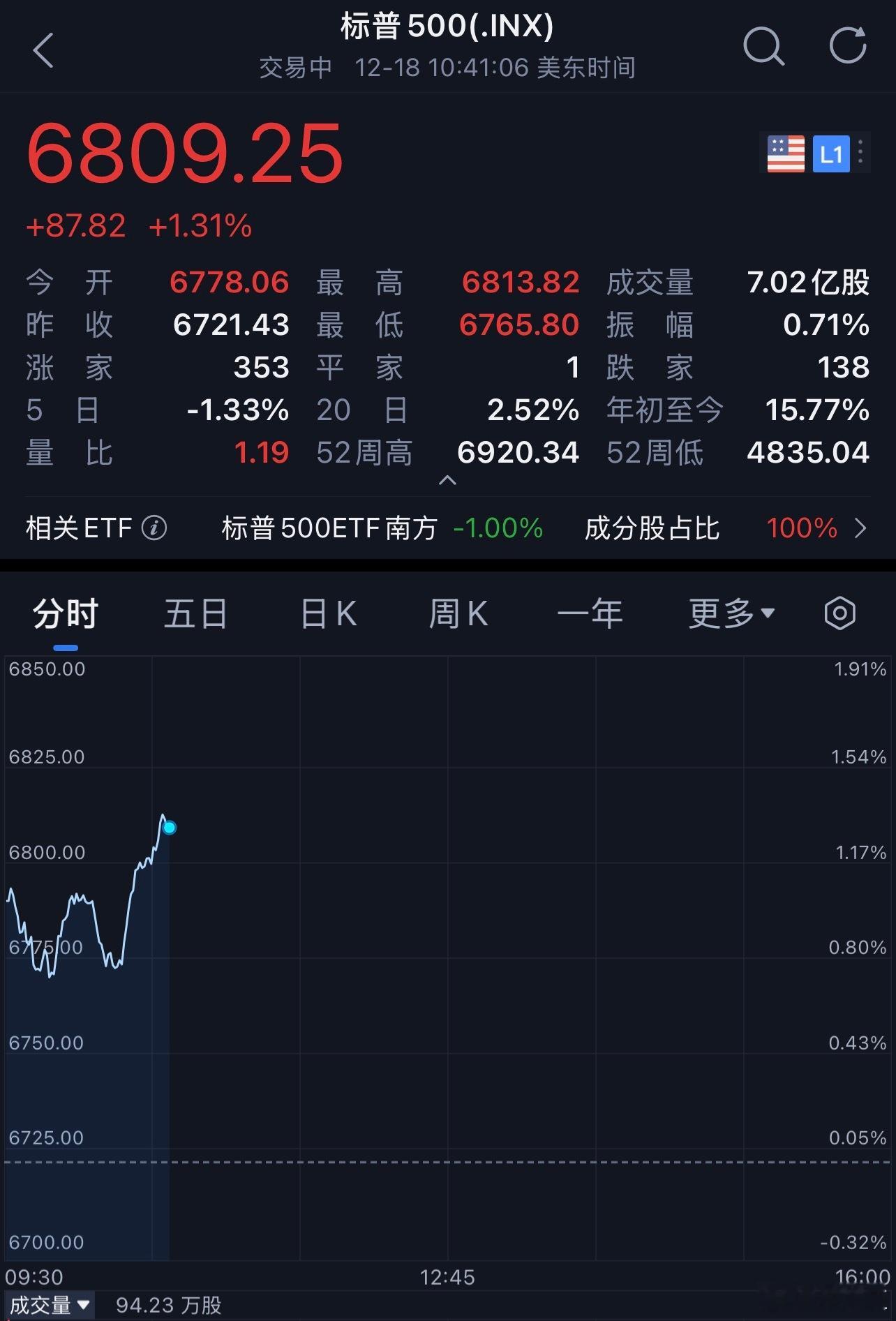 美股纳斯达克100指数、标普500指数,已经收复前一交易日的跌幅。
