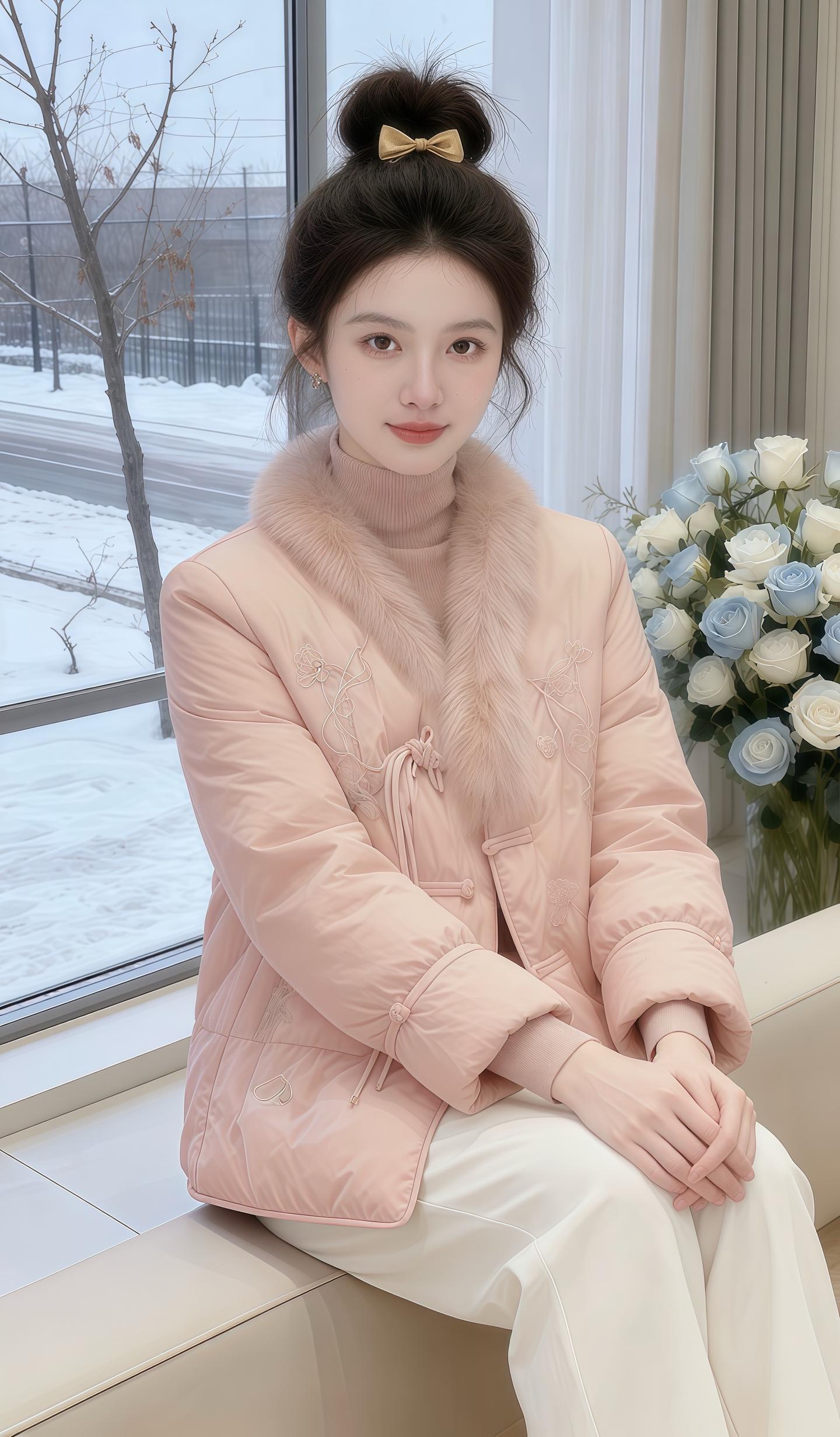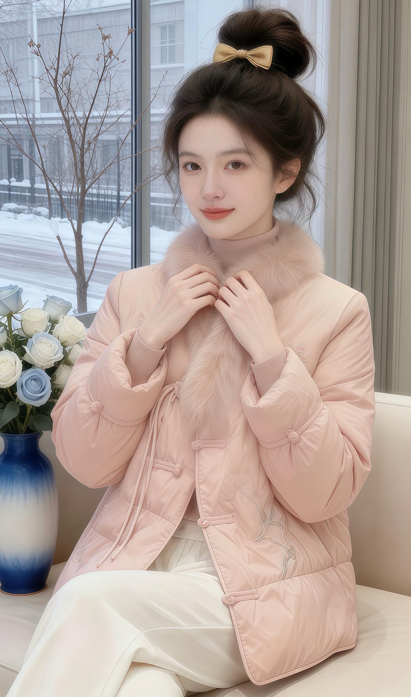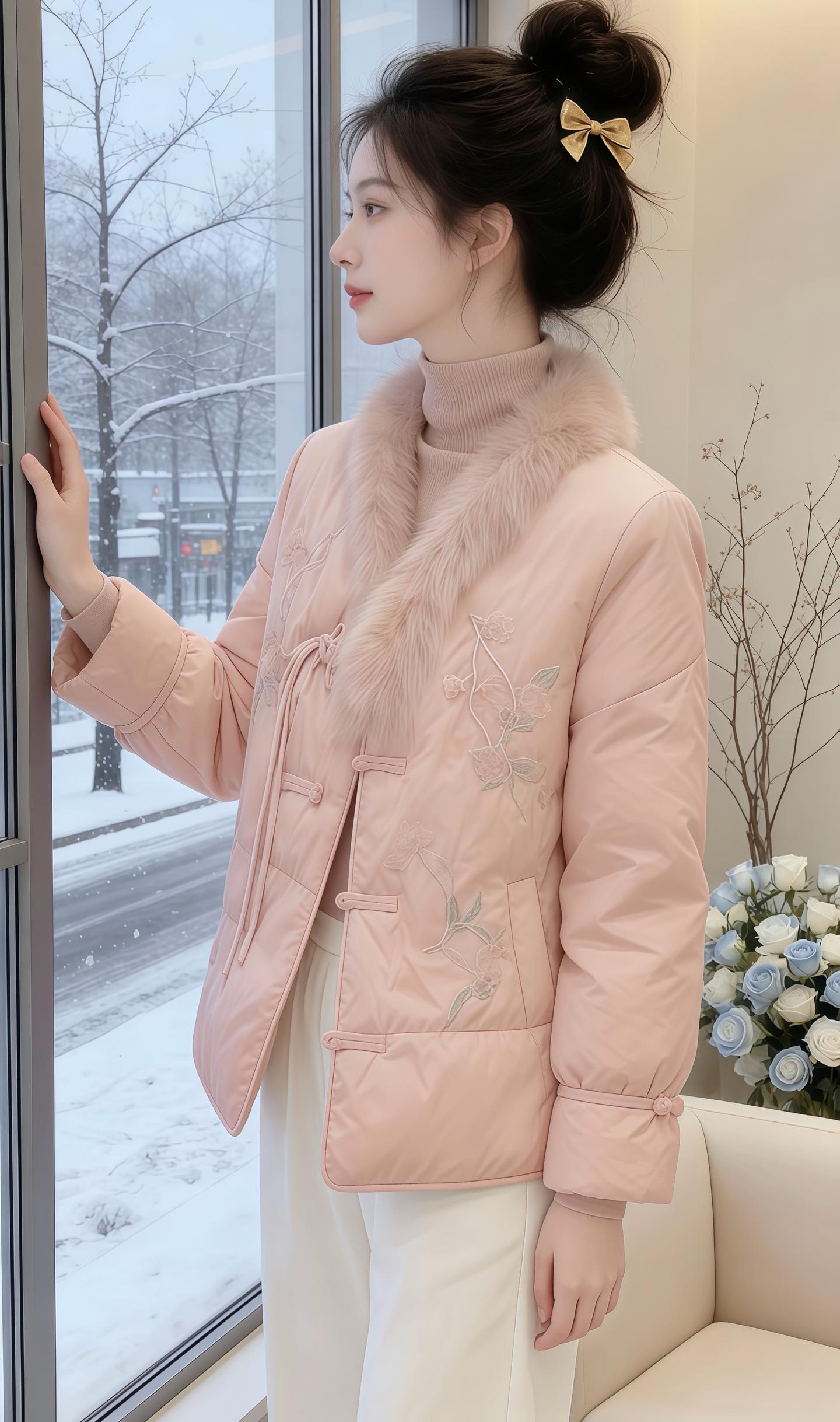 冬日飘雪的窗边,这件蓬松黑羽绒承包了所有松弛暖意,文艺氛围感拉满