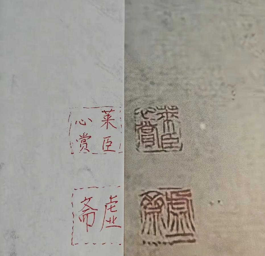 为什么南京博物院藏品,仇英的《江南春》图拍卖被发现?一方面是8800万的拍卖价格确实太响亮了。另一方面,很多人没有概念,《江南春》这幅画是巨制,看看两个观赏的人在这幅画面前简直就是非常小的存在。这么大的巨制,会引起很多人驻足观赏或者媒体拍照,肯定会传播出去。而且细心得网友在拍卖处拍到的印章做了对比,一个虚斋,一个庞莱臣,这就是民国收藏大家庞元济收藏的作品,因为庞元济,字莱臣,号虚斋!南京博物院不拿出充足自证清白的证据了,估计事就坏透了!