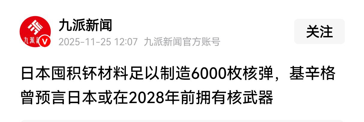 高市早苗参拜靖国神社的底气!首相官邸官员公然宣称:日本该拥有核武器 11月底的时候,面对我国针对高市早苗的涉台言论发起的反制措施和强大的外部压力。高市早苗不仅不道歉,反而狂妄的宣称,12月26号自己有可能前往靖国神社进行参拜。 当时只是觉得这个日本女首相实在是太狂妄了,如果在职期间公然参拜靖国神社,很有可能会把这个岛国推到一条不归路上。不过根据这大半个月的情况来看,高市早苗敢说这样的话,应该是有一定的底气。 18号根据日本朝日新闻对外发布的消息可以得知,日本首相官邸的一名工作人员对外公然宣称,说鉴于日本目前面临的紧张的安保形势,他个人认为日本应该拥有核武器了。而此人平时工作的主要内容就是向高市早苗内阁提供相应的安保策略。 身为首相办公室的重要工作人员,敢于在公开场合说出这样的话,其实就已经说明这个观点在日本高层内部已经获得了普遍的认可,甚至是默许。而且高市早苗本人在前段时间就已经提到了想要更改无核三原则中的一些规定,就更印证了这样的猜想。 而且,更加需要注意的是,日本不仅仅是想拥有核武器,他们还有制造核武器的一定的技术储备。比如钚元素,日本正在疯狂的囤积,囤积的数量已经远远超过民用使用的标准。如果按照现在的核武器制造水平来看,日本人手里的这种元素可以打造6000枚核弹头。而至于他们到底用多长时间可以打造出核弹来,我想高市早苗现在心里是有数的。 从这个层面上来说,一旦日本拥有了核武器,会马上成为核武大国,拥有了可以和世界上任何一个国家平起平坐的核威慑力。而到了那个时候,常规的军事力量对于日本来说已经不具备绝对的威慑性。即便对方在数量和规模上远远超越自己,但日本最大的底牌在于有能力和对方同时毁灭。 这样一来,在这颗星球上没有任何一个国家敢于轻易的大规模进攻一个拥有核武器的岛国,因为后果是自己无法接受的。而这恰恰是高市早苗一直到现在为止态度方面都非常强硬的最大的底气来源。也是敢于在两国关系紧张之际,参拜靖国神社的地。