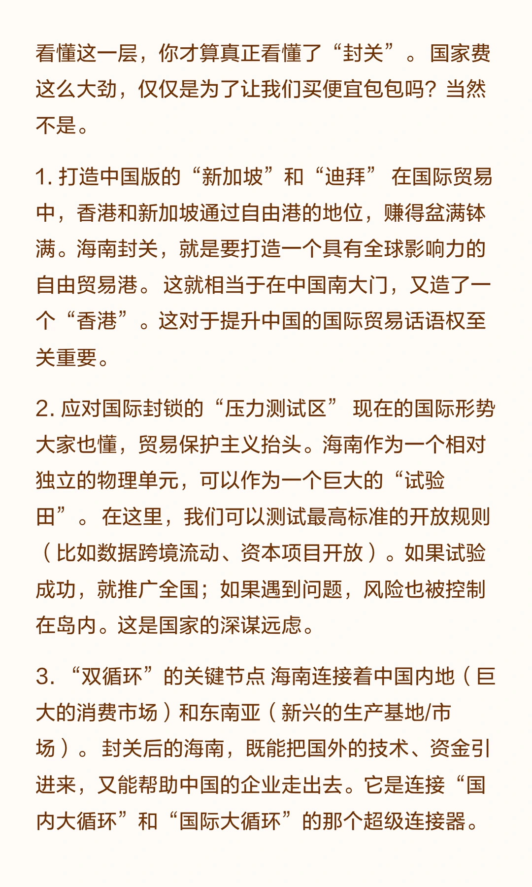 12月18日——就在刚刚,海南自贸港正式宣布启动全岛封关运作! 如果你对“封关”这两个字还是一知半解,或者觉得“这不就是买免税品更便宜了吗”,那你可能真的低估了国家这盘棋的体量。这不是一个简单的“购物节”,这是中国经济版图上一次史诗级的“系统重装”,其意义不亚于当年的深圳特区和浦东开发! 很多人疑问:封关是不是把海南围起来了?去海南要不要护照?以后海南还是中国的吗?我也能去海南淘金吗? 今天就用大白话,从原理到影响,从个人到国家,一次性把它将清楚。