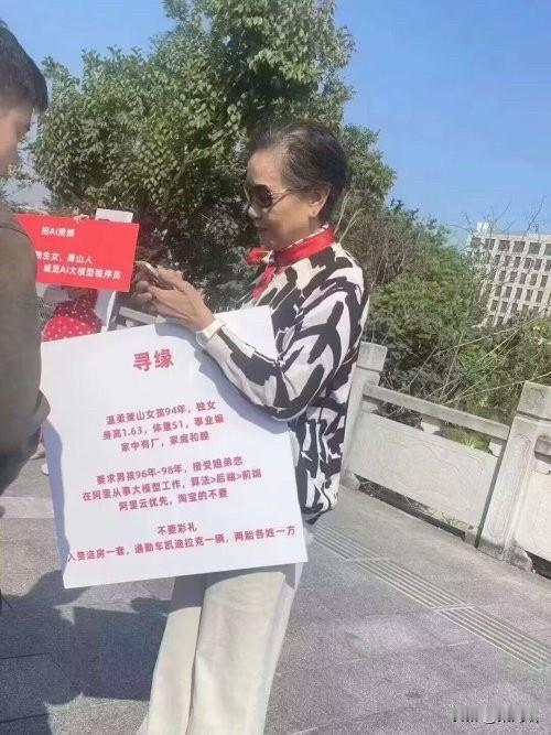 AI不仅仅是科技风口,它已经成为了丈母娘眼中的“硬通货”。 这幅图片显示了在2023年云栖大会(阿里云开发者大会)会场外,一位杭州萧山妈妈为她女儿征婚的场景。由于征婚条件明确指向“AI大模型程序员”,该事件在互联网行业引起了广泛关注和热议。
