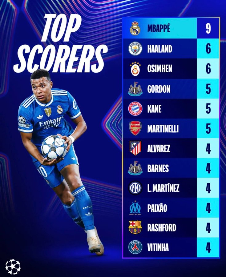 ❗️本赛季至今欧冠联赛最佳射手⬇️皇马