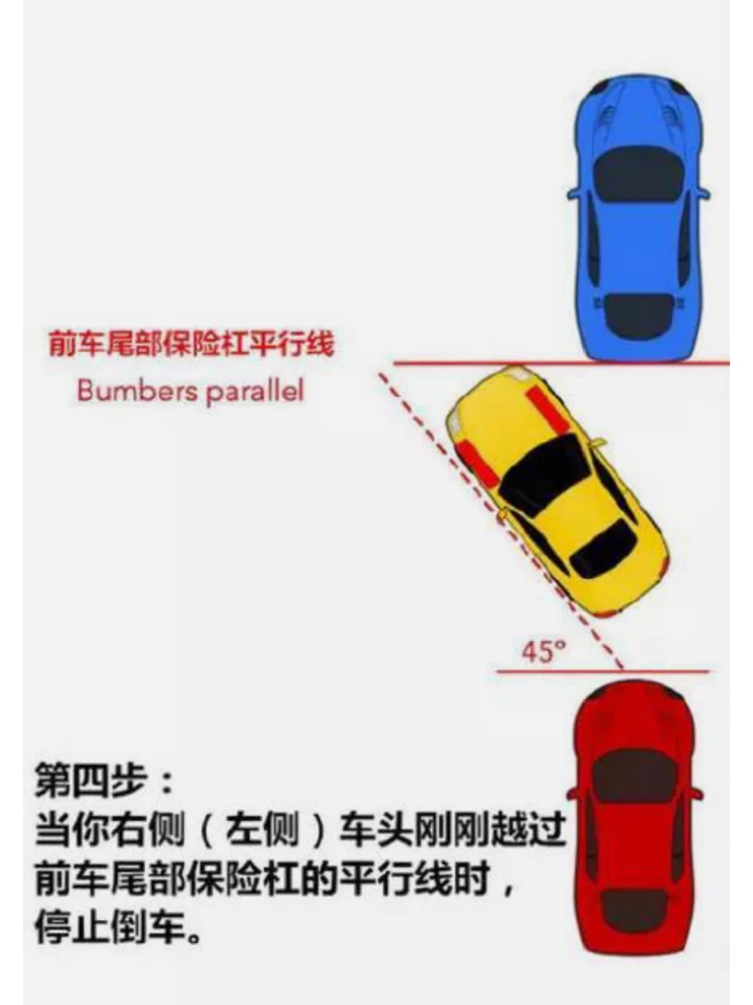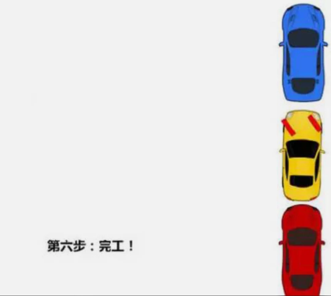 4⃣️直到车保险杠与前车尾持平,停止倒车(图5)
