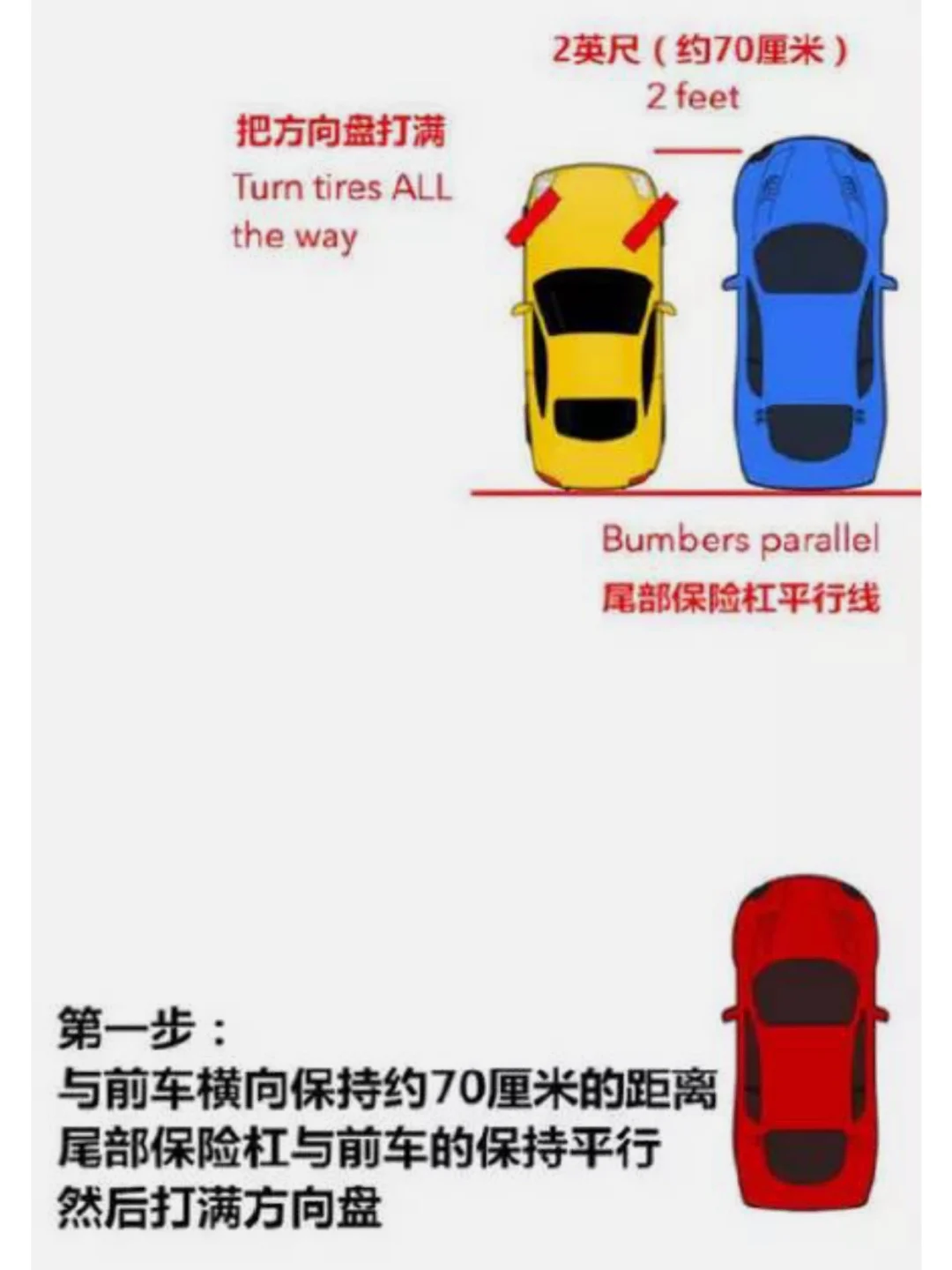 1⃣️与前车持平,肩部与前车驾驶位平行(图2)