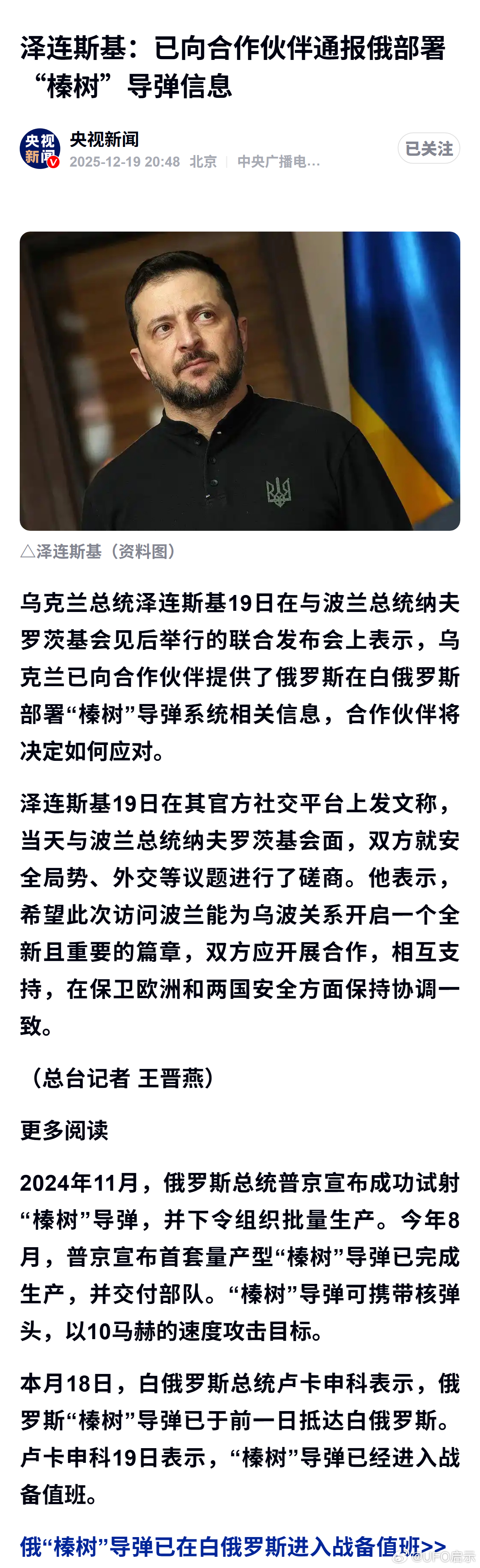 乌克兰总统泽连斯基传来新消息了!据CCTV国际时讯:乌克兰总统泽连斯基12月