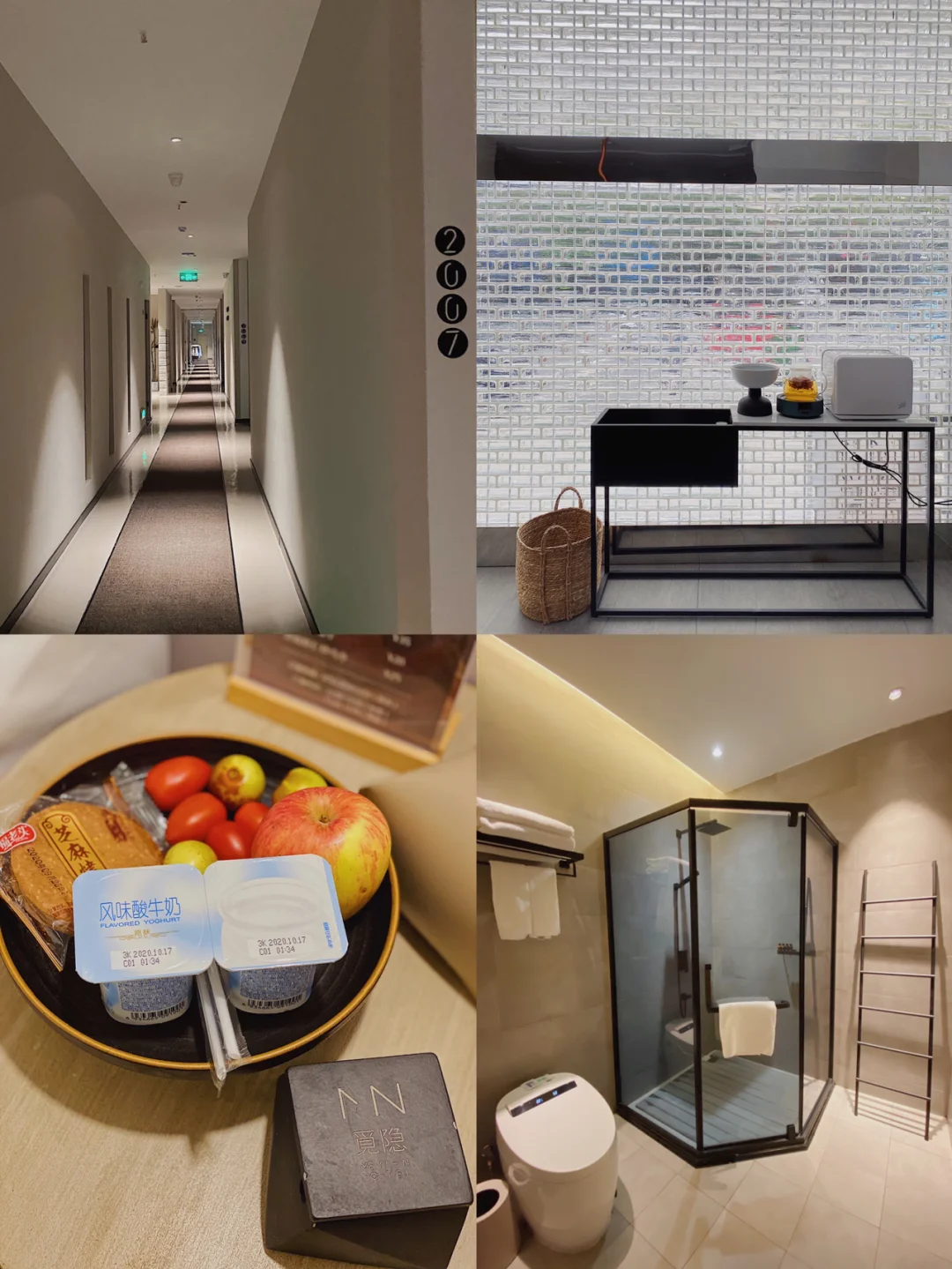 🥰办理完入住之后,进入房间看到已经摆好了欢迎果盘和酸奶,这也太贴心了吧!😎觅辰星空庭院整个布局设计都让我非常心水,能看出酒店设计师对于每个细节都很用心!🤔这间房间所有基础的设施都是智能化感应,床头&吊顶&浴室的氛围灯都恰到好处的运用了,给人一种很舒适的感觉,这点非常加分了!