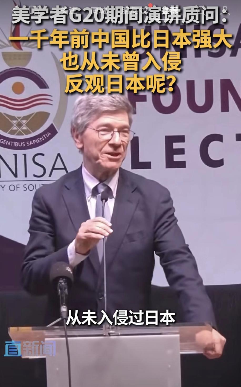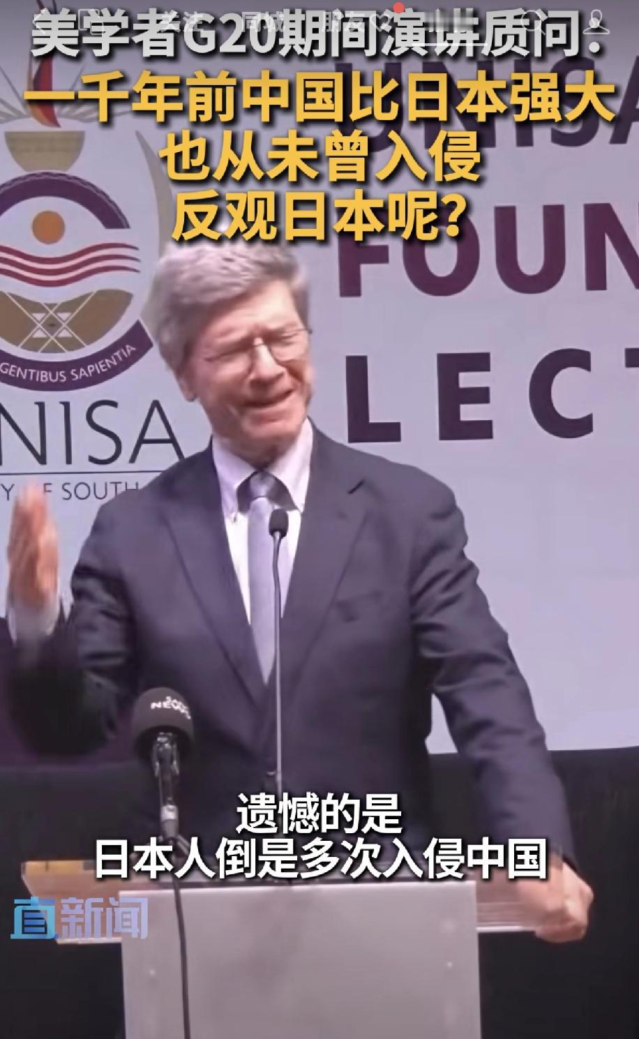 G20峰会期间美国学者杰弗里.萨克斯在南非大学演讲中谈到中日关系,他指出中国拥有悠久的历史和卓越的治国智慧,从未欺凌邻国,遗憾的是日本却多次入侵中国,与中国形成鲜明对比。 现在的高市内阁政府已经引起全球有正义只之士的强烈谴责。日本不仅否认历史,还篡改中小学历史教材、参拜靖国神社,这是严重的挑衅行为。高市内阁政府的错误立场,日本前首相石破茂多次指责高市早苗在玩火自焚,把日本拉入深渊,这不是作为首相该有的态度。