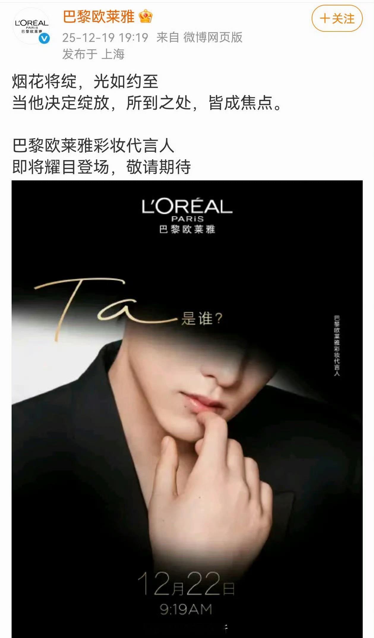 田栩宁代言巴黎欧莱雅直接一步给了代言人 确实越来越重视流量大的了