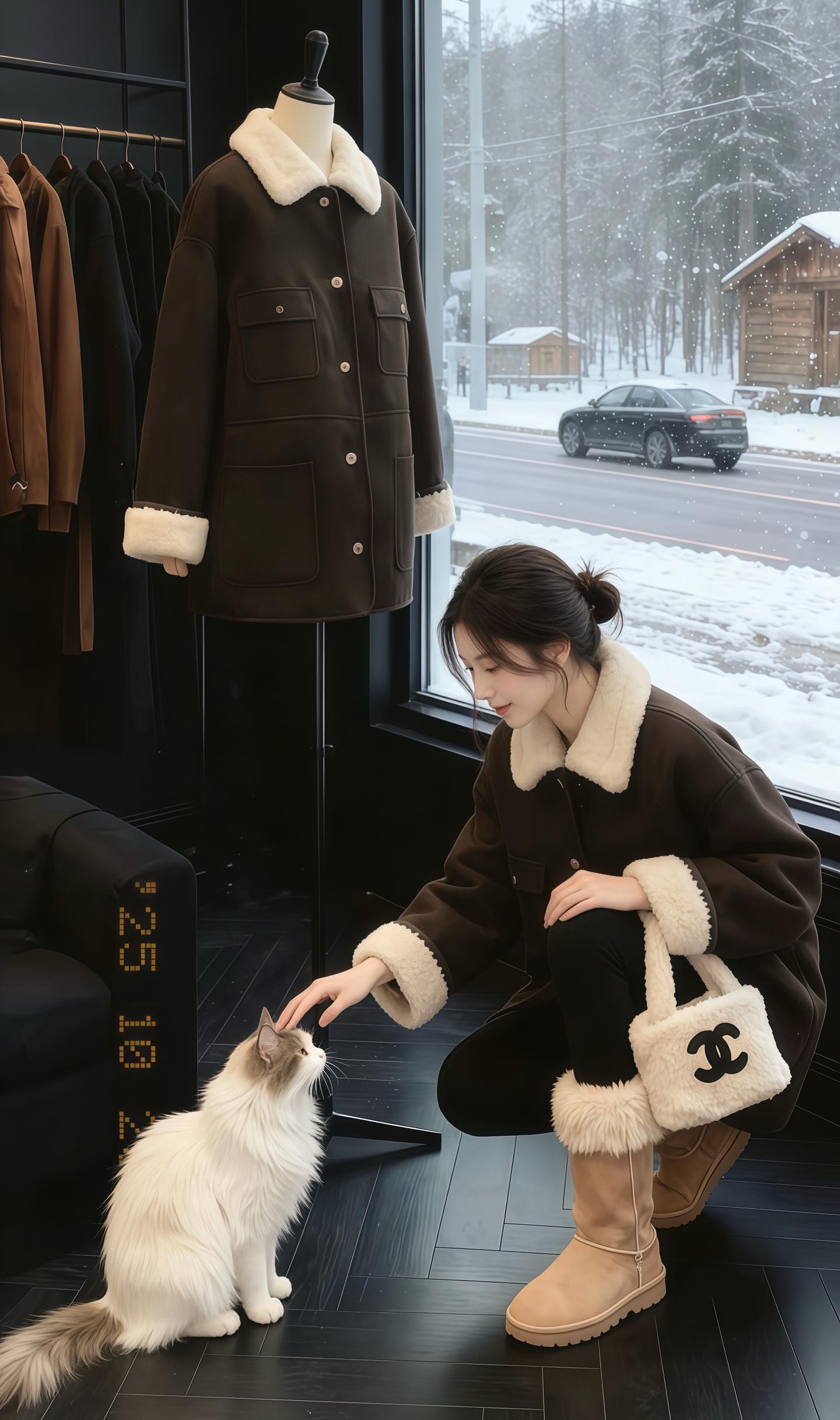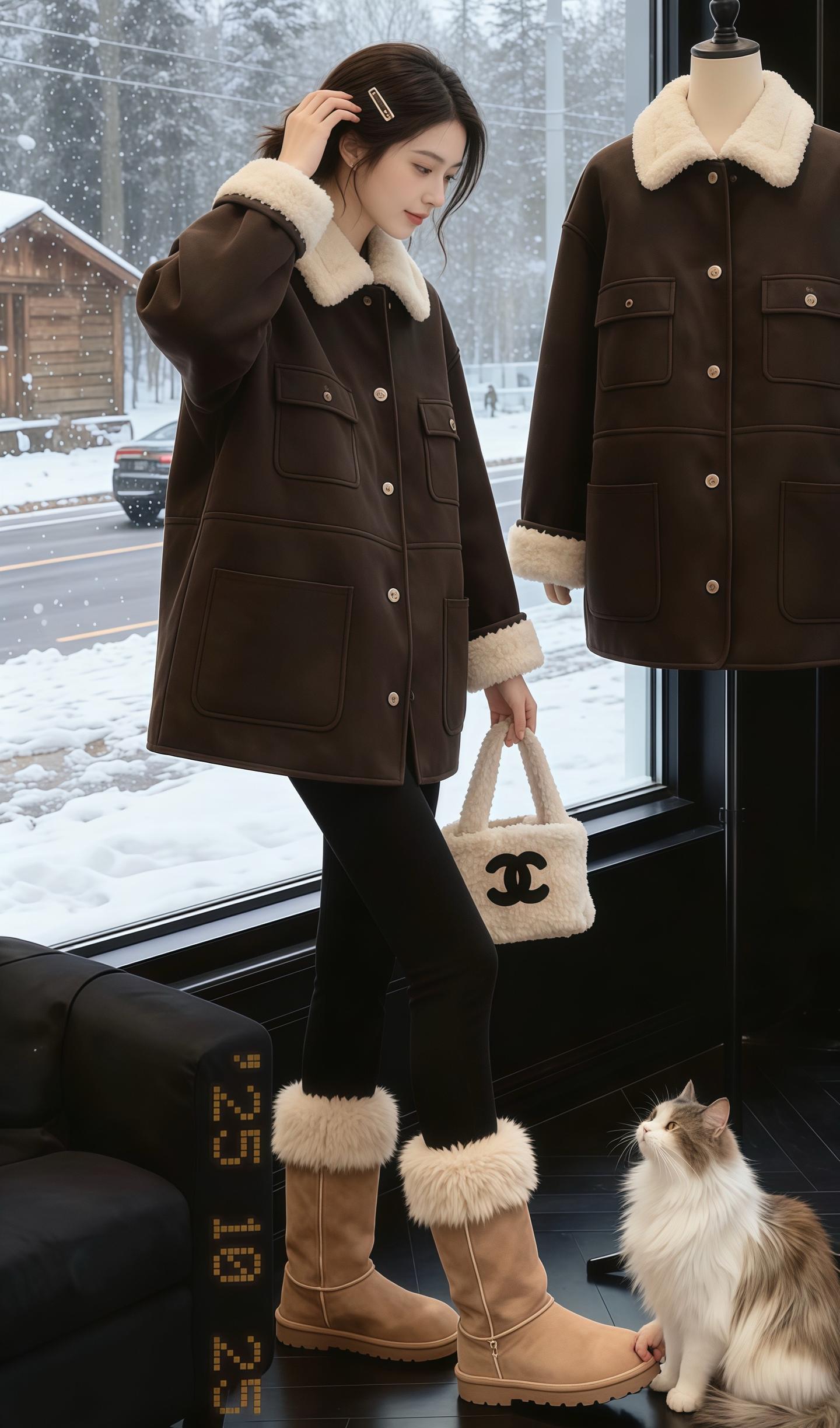冬日飘雪的窗边,这件蓬松黑羽绒承包了所有松弛暖意,文艺氛围感拉满
