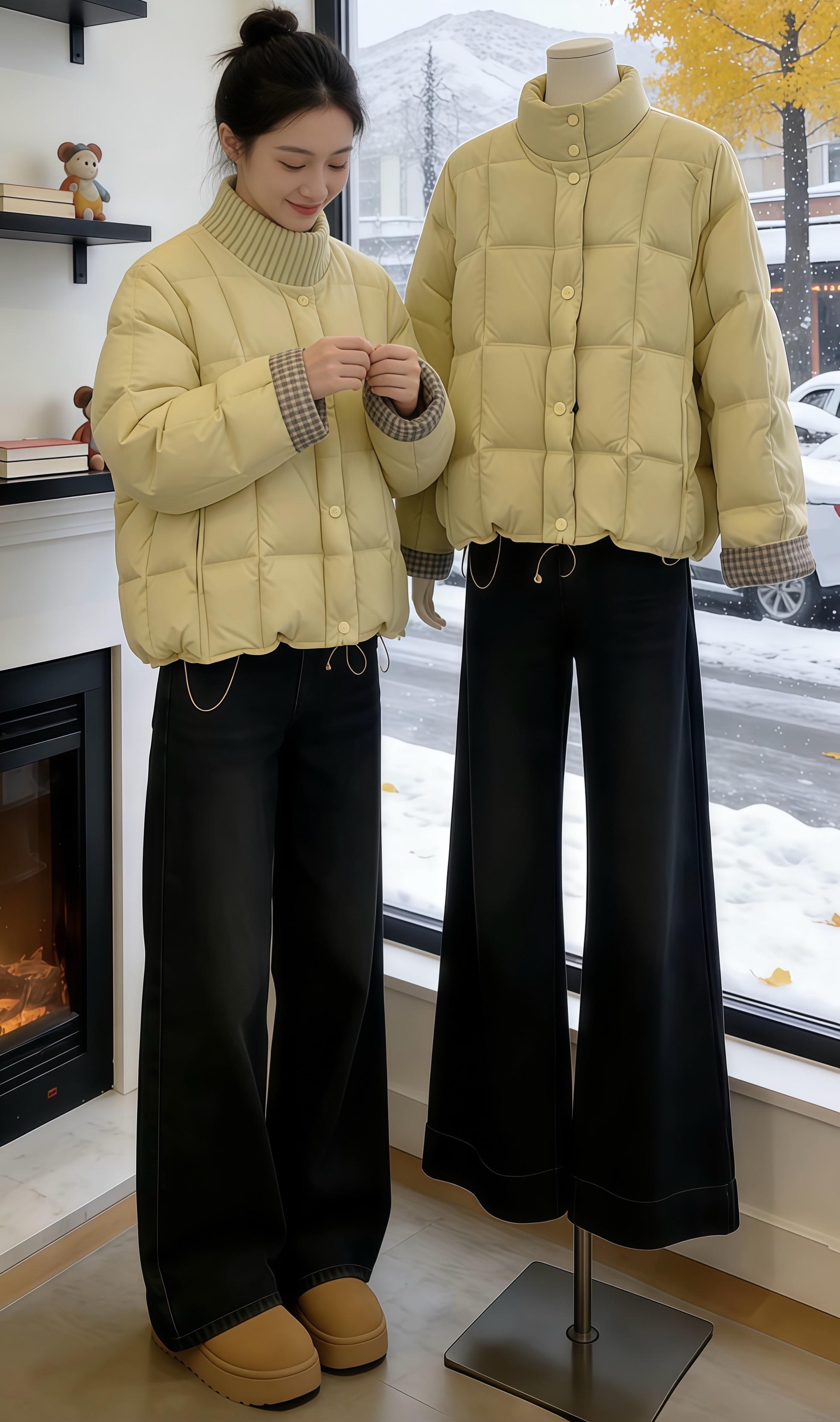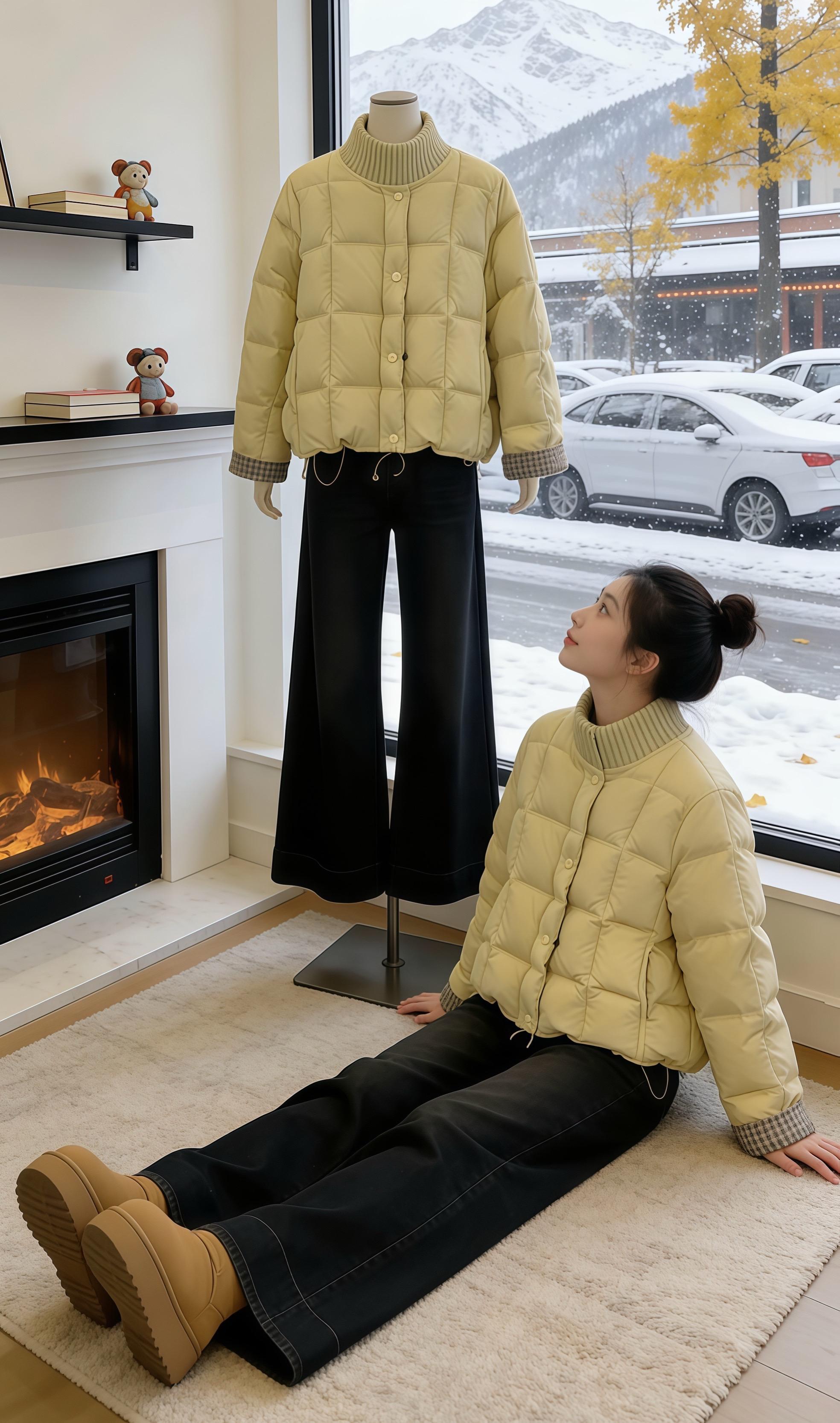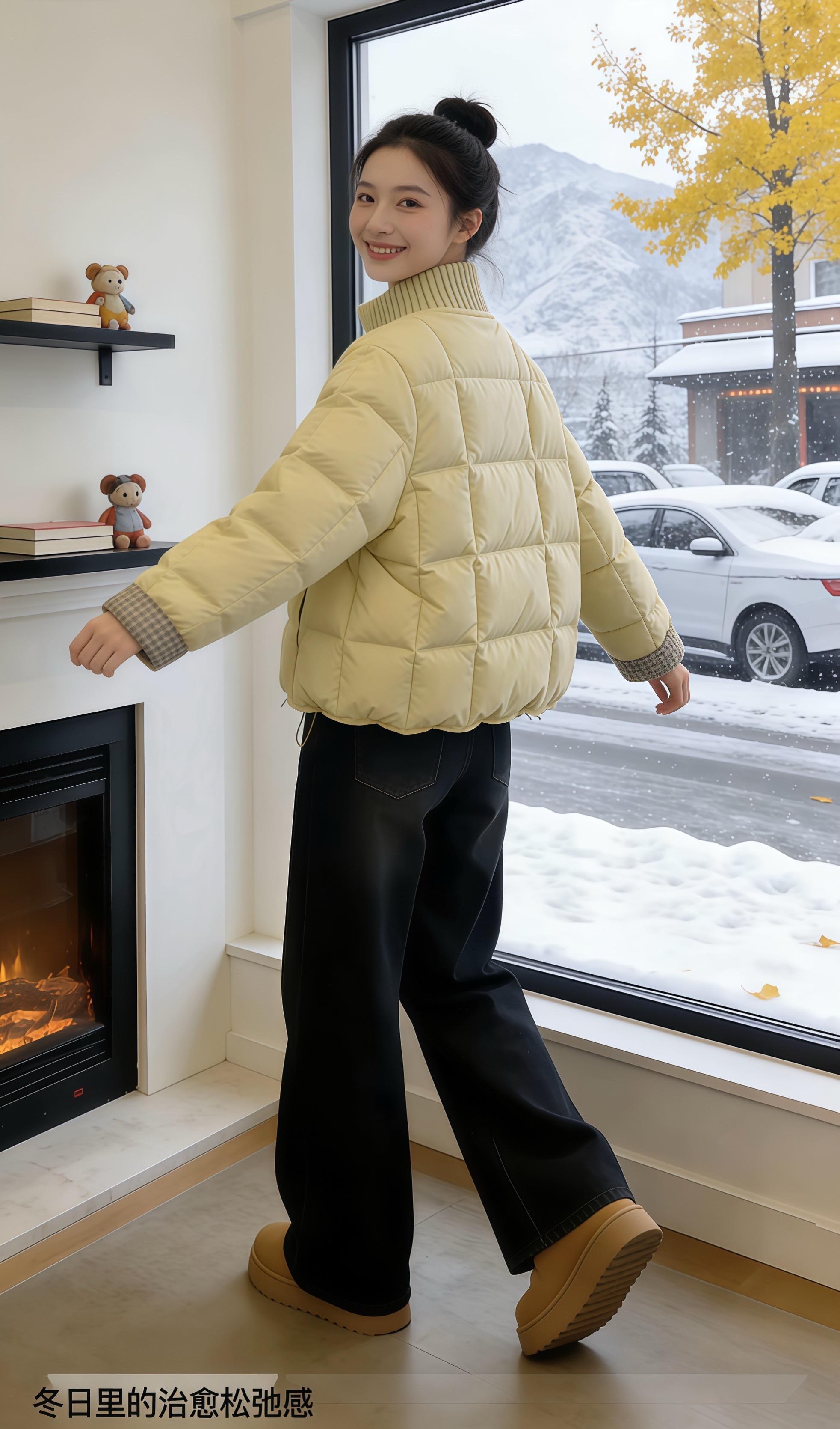 冬日飘雪的窗边,这件蓬松黑羽绒承包了所有松弛暖意,文艺氛围感拉满