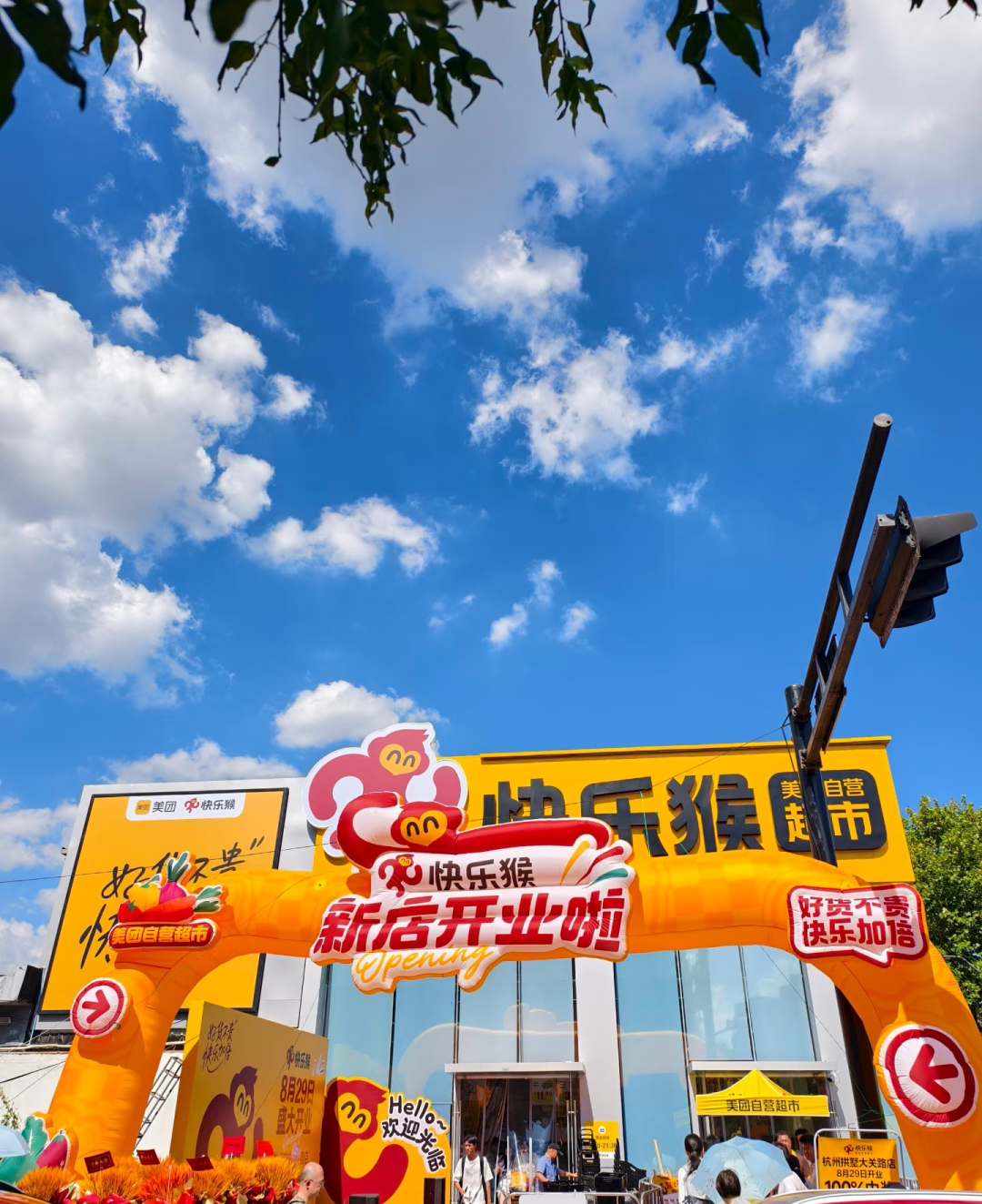 而美团则是另起炉灶,打造了一个全新的硬折扣超市品牌——“快乐猴”。