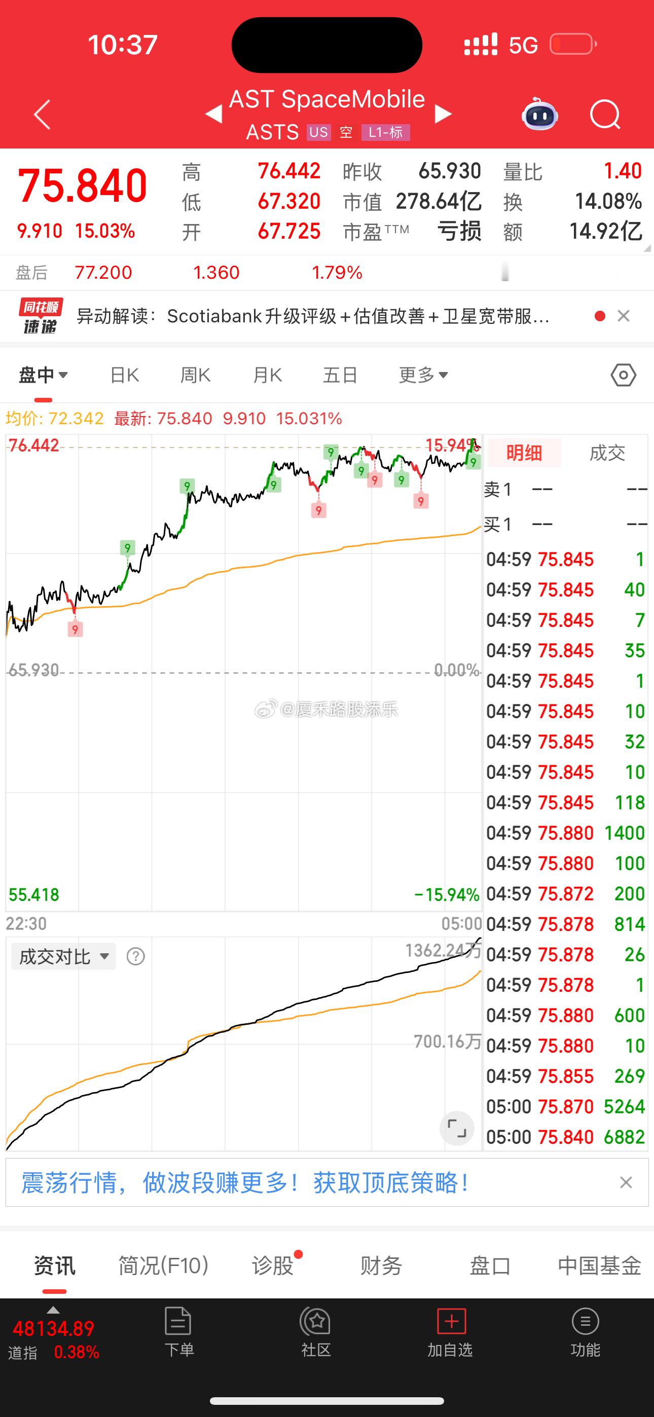 商业航天美股昨晚热度持续攀升,近期鉴于对美国AI泡沫的担忧,商业航天板块承接资金轮动。只要商业航天具备实际应用,马斯克的SpaceX已成功将一万多颗低轨道组网卫星发射升空,进而带动各产业链蓬勃发展,想象空间极为广阔。回顾我国的“十五五”规划,商业航天也即将迎来开局之年。未来五年计划发射超五万颗卫星,此板块注定将为我国经济发展注入强大动力。商业航天板块不少个股依然在走趋势,这里行情还会反复,还没有结束~!