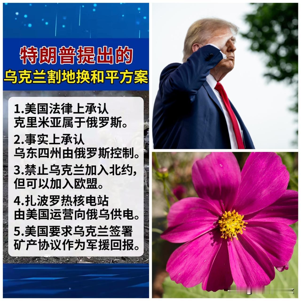 [捂脸]我想知道美国到底做了什么,特朗普敢如此狂妄的提出“俄乌和平方案”: 第一 美国法律上承认“克里米亚”属于俄罗斯。 第二 事实上承认“乌东四洲”属于俄罗斯。 第三 禁止乌克兰加入北约,但可以加入欧盟。 第四 扎波罗热核电站由美国运营,向俄乌供电。 第五 美国要求乌克兰签署“矿产协议”作为军援回报…… 俄乌打了将近四年,最后却为美国做了嫁衣,乌克兰一片哀嚎,俄罗斯也是一脸的懵逼,[炸弹]一朝回到解放前!