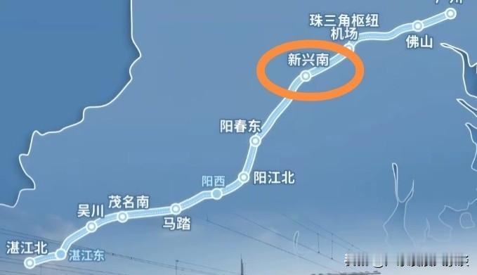 广东一个县级高铁站,居然每天开通 19 对(38 趟)高铁,实在太厉害了!这便是广湛高铁的新兴南站。新兴南站坐落于云浮市新兴县太平镇,距城区约 7 公里,离广州站 141 公里,离广州白云站 146 公里。 广湛高铁将于 22 号通车,届时新兴南站将告别无高铁的历史。从新兴南站搭乘高铁,40 多分钟就能直达广州,十分便捷。大家说,这个县是不是很牛呢? 合湛高铁站 粤西高铁站 佛山广湛高铁 广高铁站 罗定高铁北站 云浮东站 罗定市火车站