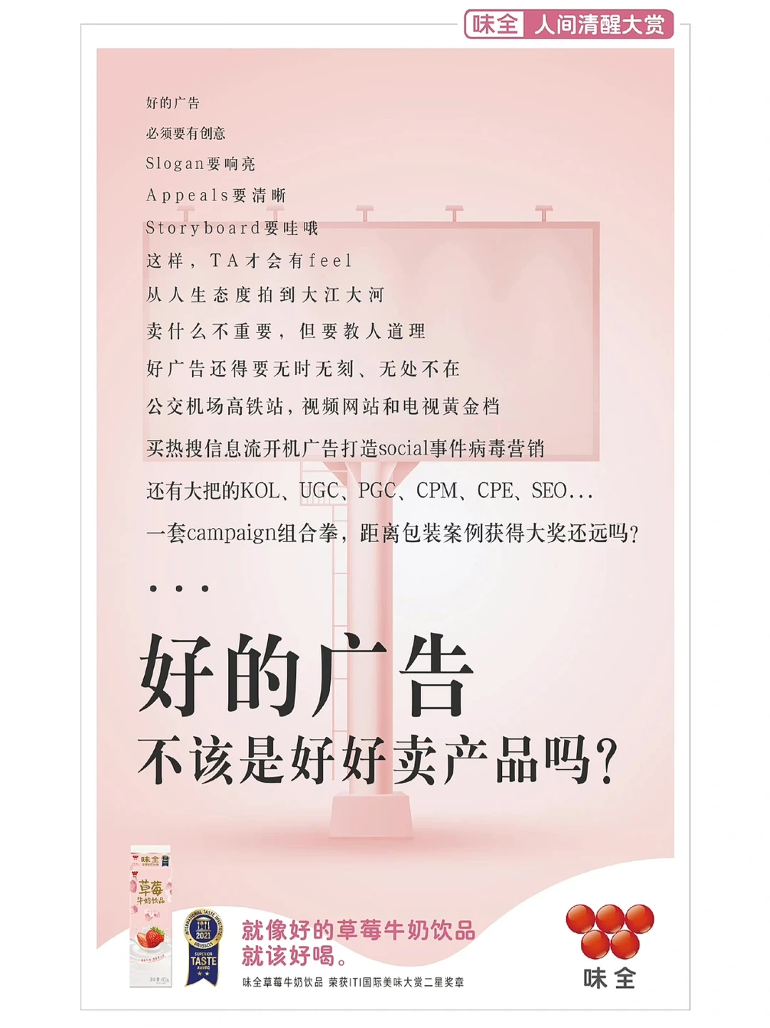 人间清醒大赏|不走寻常路的味全纯文案广告