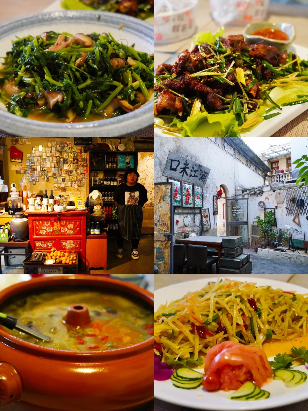 一家藏在喜洲古镇的私房菜,那天我心情不是很好,吃东西都没有什么胃口,然后老板娘过来安慰我:“小姑娘别不开心呀,人生没什么过不去的,开开心心吃饭最重要。”听完真的有被治愈到,开始认真干饭了!竹笙松茸汽锅鸡,里面有乌鸡,喝上一碗鸡汤很鲜甜,胃马上也被暖到了!香茅排骨也很好吃,排骨的肉又脆又嫩,还带一点香茅香,其他随便点都味道不错。