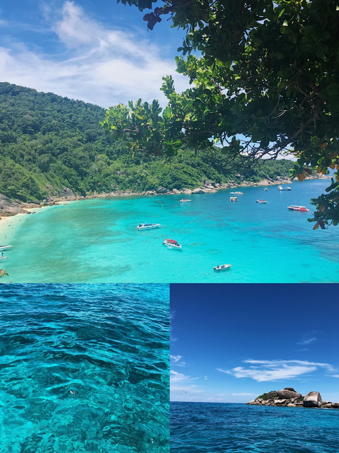 🏝斯米兰岛在泰国全年只开岛150天,由9个群岛组成,只有4号岛和8号岛是可以登岛。曾被英国《卫报》评为世界十大潜点之一,可以到7号岛巴布岛和9号岛班古岛就近海域浮潜海水是可见的蓝色,考取了ow证书的同学可以报名船宿深潜,没有证书的同学可以报名浮潜一日游去体验。美是很美,但是去完斯米兰岛,很容易觉得其他海岛黯然失色。