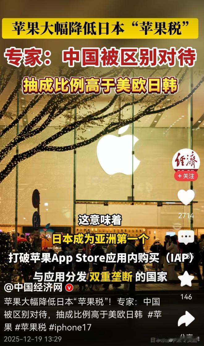 苹果税在日本应声而降!这对中国市场来说是一个关键信号! 最近有件事值得我们关注,日本那边一项新法案刚生效,苹果立马调整了日本地区的“苹果税”政策。其速度之快,态度之配合,让不少吃瓜群众都惊呆了。 日本这个法案叫《特定智能手机软件竞争促进法》,核心要求很明确:开放第三方应用商店,开放第三方支付渠道,12月18日生效。结果苹果当天就更新了官网政策,日本市场不仅开通了第三方应用商店,应用内支付直接降到10-21%,应用外支付仅为10%-15%! 说白了,苹果在日本乖乖降税根本不是怕日本法案,而是背后藏着美元体系的续命算盘,这波操作给中国市场提了个醒:第三方支付通道可能成稳定币收割的工具,买苹果手机可得想清楚风险。 最近苹果在日本的“秒怂”操作刷爆了全网,说出来你可能都不信。 日本《特定智能手机软件竞争促进法》12月18日刚生效,苹果当天就火速更新官网政策,不仅乖乖开放了第三方应用商店,还把“苹果税”砍了一大截,应用内支付降到10-21%,应用外支付更是低至10%-15%。 这速度快得让吃瓜群众都懵了,要知道苹果之前为了维持高抽成,跟全球多个国家的监管都硬刚过,怎么到了日本就这么配合? 其实这背后根本不是简单的企业怕监管,而是牵扯到全球金融的大棋局。 现在美国国债濒临违约,美元信用也在持续透支,这俩可是美元体系的根基,一旦垮掉整个西方金融都得抖三抖,日本和欧洲早就深度绑定美元体系,手里攥着海量美国国债,等于被绑在了美国的战车上,只能跟着美国一起想办法“续命”。 而他们找到的突破口之一,就是稳定币,第三方支付通道恰恰是稳定币流通的关键载体。 可能有人不懂稳定币和第三方支付的关系,简单说,稳定币号称和美元1:1挂钩,但本质是私人发行的信用产品,之前就出过USDC因储备资产问题脱锚贬值的事儿。 美国想靠稳定币维持美元的全球霸权,让它成为跨境支付的新工具,而苹果开放的第三方支付通道,就能成为稳定币渗透日常消费的入口。 但这里面的风险大得很,稳定币的监管框架至今混乱,一旦出现交易纠纷,你找发行方?人家可能推三阻四;找苹果?苹果会说这是第三方支付的问题;找监管?各国政策不统一,维权堪比登天。 这可不是危言耸听,之前欧盟MiCA法案落地后,不少稳定币平台直接暂停了当地业务,就是因为合规成本太高;美国的稳定币监管法案吵了半天都没落地,连发行方都得同时应对多套标准。 连国际清算银行都承认,稳定币在信用和稳定性上根本达不到货币体系的基本要求,说白了就是个没保障的金融工具,而苹果开放第三方支付,等于是给这种高风险工具打开了一扇方便之门。 更关键的是,这波操作里,日本看似赢了消费者福利,实则是在帮美国维护美元霸权,毕竟日本手里的美国国债要是砸在手里,经济直接就得崩,但对我们普通消费者来说,可就得擦亮眼睛了。 要是以后用苹果手机的第三方支付通道进行稳定币交易,出了问题没人管,那可真是叫天天不应叫地地不灵,要是这时候还非要凑钱买苹果手机,心甘情愿用这些没保障的支付方式,那真就是自愿承担风险,怨不得别人。 说到底,苹果在日本的妥协,也给中国市场提了个关键信号:大型科技公司的支付政策调整,背后可能藏着复杂的国际金融博弈。 我们不是说要抵制什么,而是要看清背后的风险,毕竟金融安全从来都不是小事,哪怕是日常的手机支付,也可能牵扯到全球金融的大棋局。 以上仅为个人看法,不构成任何消费建议,你觉得苹果后续会在中国调整“苹果税”政策吗?对于稳定币进入日常支付,你又有什么顾虑?欢迎在评论区留下你的观点。