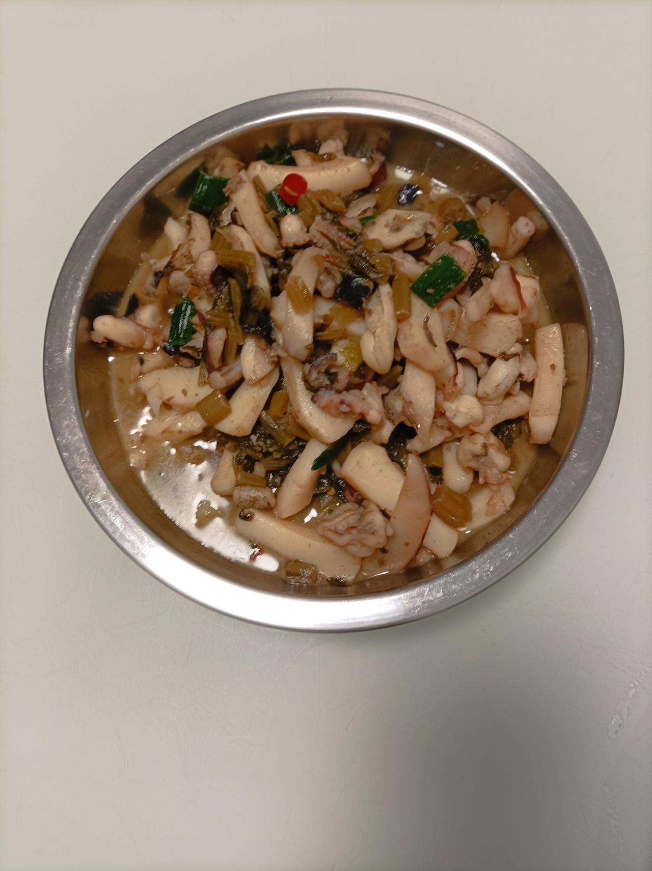 新年从一顿美食开始周末美食,我儿子做的周末大餐:回锅肉,红烧鱼,猪肚鸡虫草花汤,炒儿莱,鱿鱼炒咸菜,河虾炒萝卜丝!