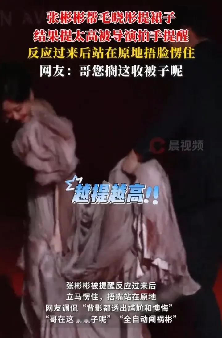 论热心肠的“翻车”现场! 张彬彬帮毛晓彤提裙子, 愣是把“绅士风度”演成“搞笑名场面” 导演拍手提醒的瞬间,他原地捂脸的样子,像极了上课开小差被点名的我。可爱又好笑,这波反差萌我给满分! 重点是毛晓彤,还赶紧安抚他,扶着他的肩膀,像安慰一个犯了错的小孩一样,从这里也体现到了毛晓彤的善良和温柔。