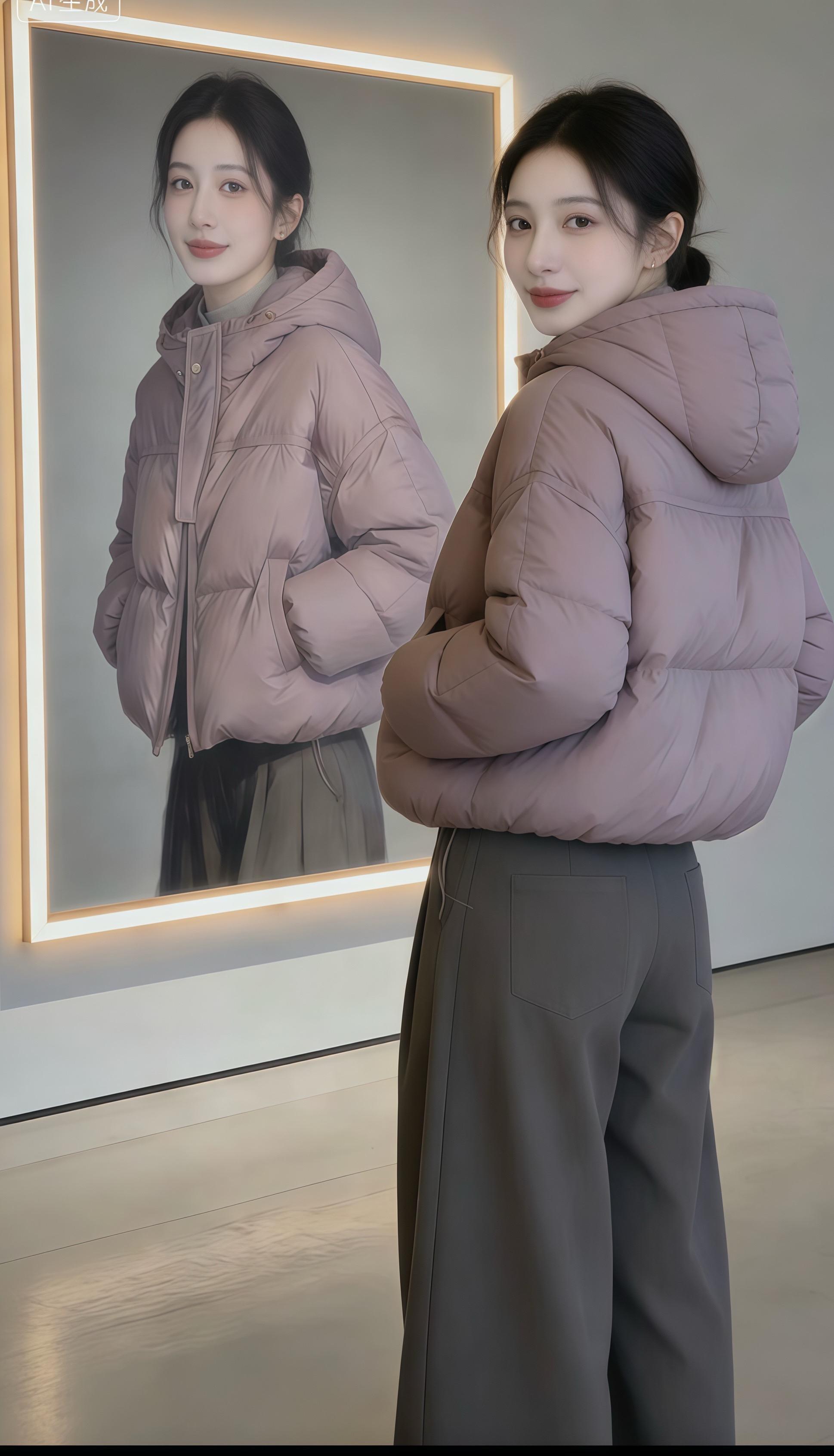 冬日飘雪的窗边,这件蓬松黑羽绒承包了所有松弛暖意,文艺氛围感拉满
