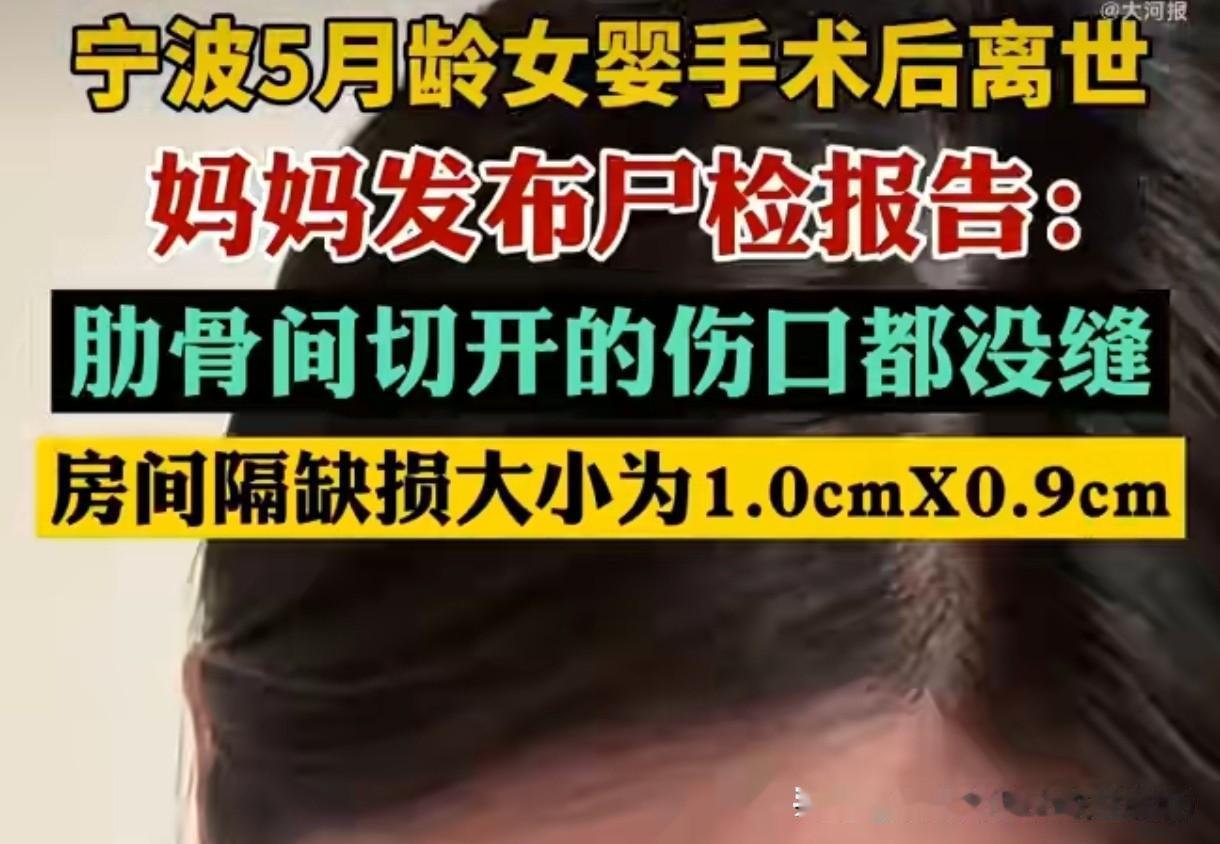 宁波5月龄女婴术后离世,尸检与手术记录相悖,真相该向谁要? 宁波5月龄女婴小洛熙的悲剧,让无数人揪心不已。一个本该在襁褓中安睡的孩子,做完心脏手术后没能醒来,而12月19日家属公布的尸检报告,竟和医院的手术记录出现关键分歧,这其中到底藏着怎样的疑问? 小洛熙出生后被查出心脏问题,父母带着她四处求医,最终选择手术治疗,满心期盼孩子能健康回家。可谁也没想到,手术结束后,孩子因心力衰竭、呼吸功能衰竭不幸离世,突如其来的噩耗让整个家庭瞬间崩塌。 悲痛过后,家属申请了尸检,试图弄清孩子离世的真正原因。可尸检结果却超出所有人预料:报告明确显示未检见“冠状静脉窦型房间隔缺损”,反而确诊为1.0cm×0.9cm的继发孔型房间隔缺损,和手术记录的核心描述完全对不上。 医学科普博主@庄时利和 的解读点破了关键:孩子的房间隔缺损确实存在,但亚型与手术记录不符,尸检报告没有“3mm房缺”的表述,更没发现所谓的“冠状静脉窦无顶综合征”。尸检给出了客观依据,但手术记录是否准确、有无篡改,还需后续司法鉴定。 这一矛盾瞬间引发全网热议。有人愤怒质疑:“手术记录是医疗过程的核心凭证,如此关键的信息怎能不一致?医院必须给出解释!”也有人理性分析:“医学诊断复杂,会不会是术前检查有局限,或是尸检存在特殊情况?” 核心分歧直指手术记录的真实性,是失误还是另有隐情? 每个生命都值得被尊重,每个疑点都不能被回避! 5个月大的小洛熙没能等到长大,她的家人理应得到一个清晰的答案。手术记录与尸检报告的出入为何存在?术前诊断是否准确? 你觉得这起事件的问题可能出在哪里?是医疗流程中的疏漏,还是有其他未被发现的隐情?支持家属继续通过司法鉴定维权吗?来评论区说说你的看法,怎样才能还孩子和家属一个公道?